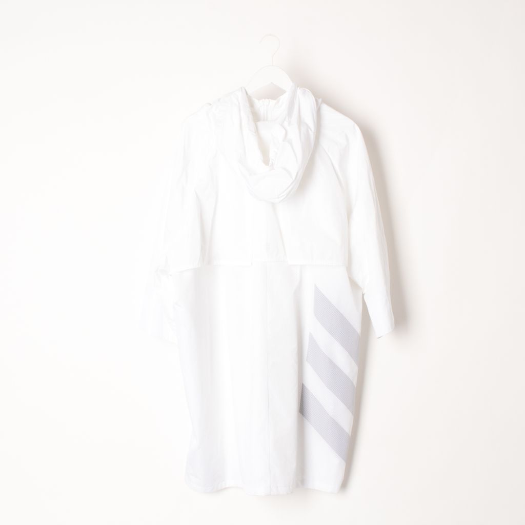 This James Harden x Adidas collab parka features a hooded back with an adjustable drawstring, front zip closure, mid-length sleeves, hidden front zip pockets, storm flaps at the front and back and has a double lined perforated tech fabrication. Gently worn, some marks through out from previous wear, in good condition. Has a oversized, boxy fit.