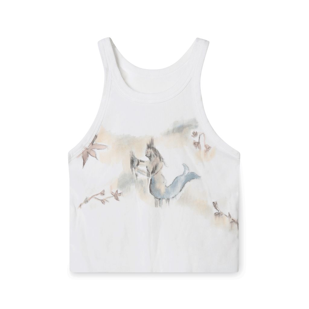This white tank is handmade and inspired by religious and spiritual iconography from the late 14th-mid-17th century.