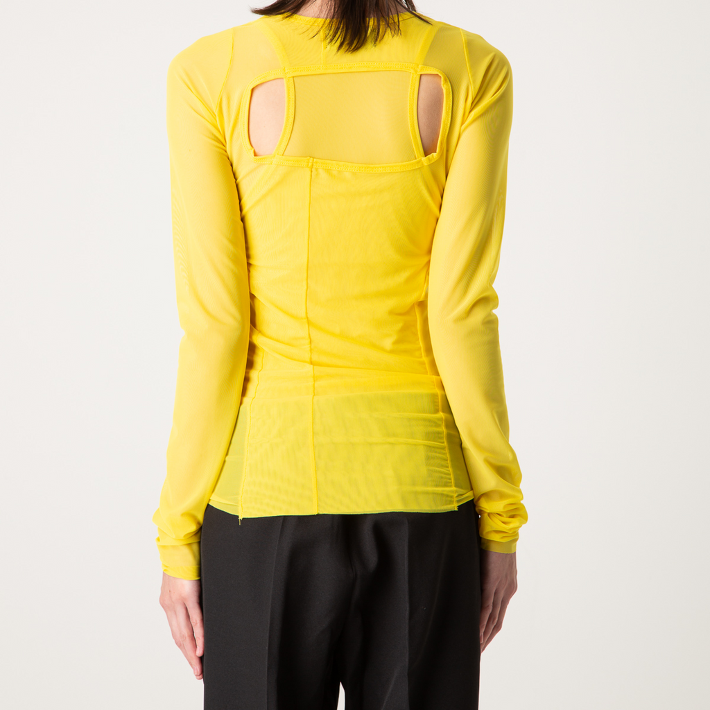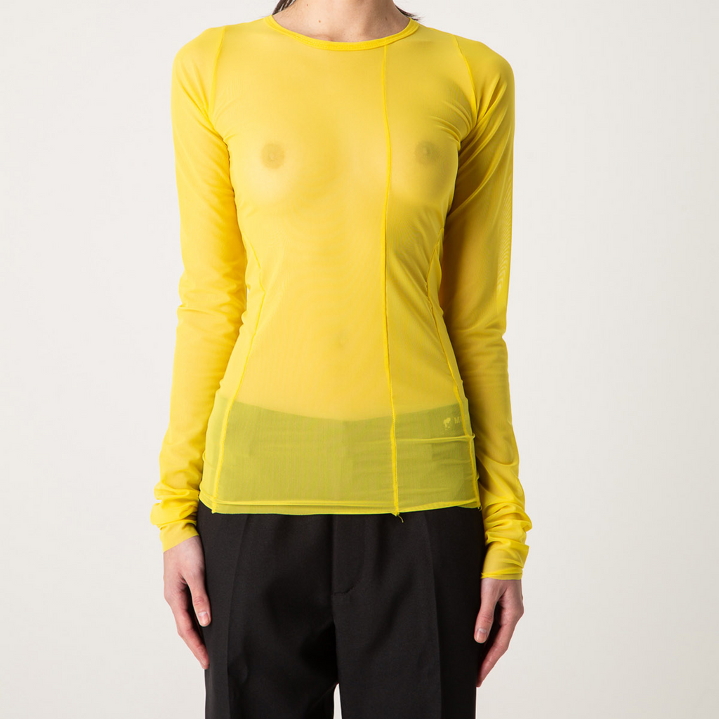This window tee is made from a 4x4 100% nylon power mesh. It is accentuated with an asymmetric seam down the front and back pane, arched side panels, sewn in tank insert, and trademark Dreamhouse bound window. All orders are made to order.