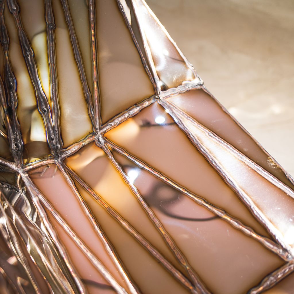 Mayor digitally designs his pieces using sophisticated CAD applications and then meticulously hand-makes each piece using traditional welding techniques. The surfaces are mirror-smooth anodized stainless steel that warps and twists when the seams are welded, allowing a viewer to experience and understand the craftsmanship behind the construction. Mayor’s technique is inspired by the sculptural possibilities of a high-tech approach while also embracing the idiosyncrasies and individuality of the hand-made.