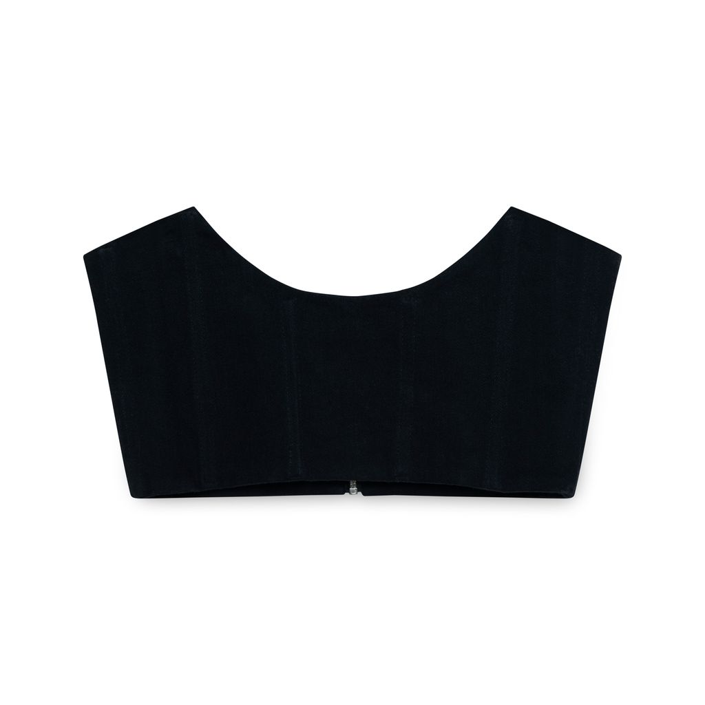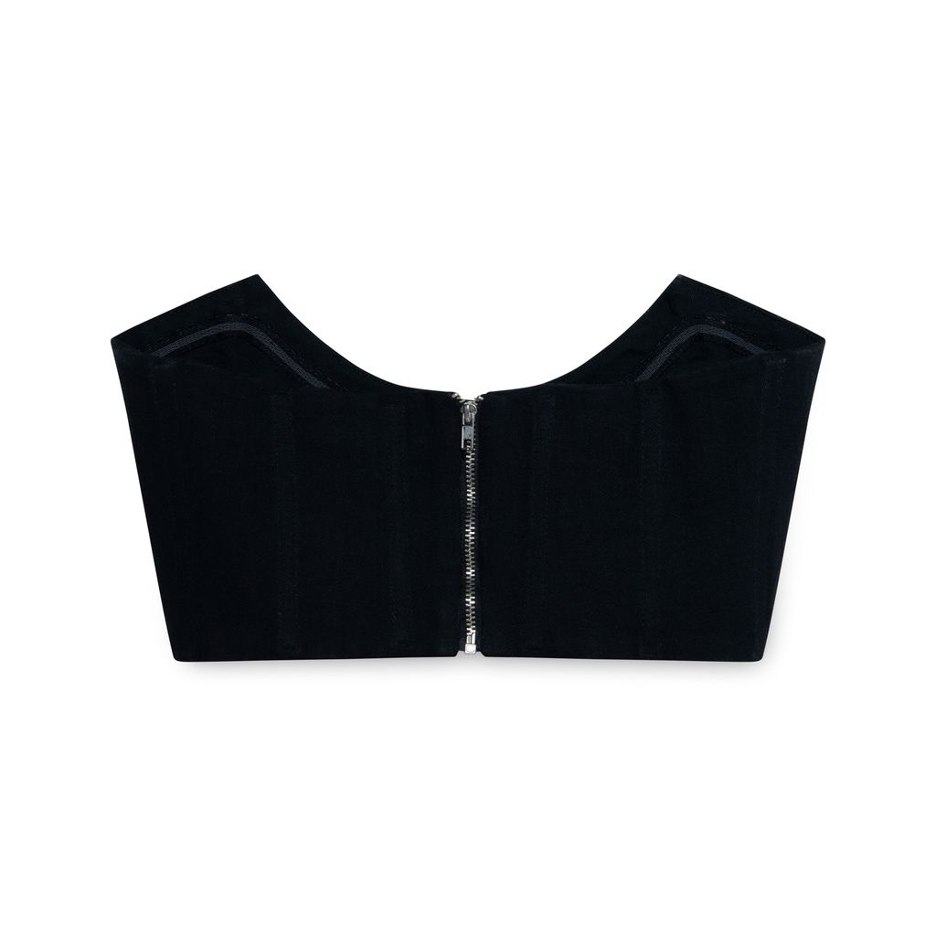 Miaou Black Corset Top features silver zipper on back and corset boning.