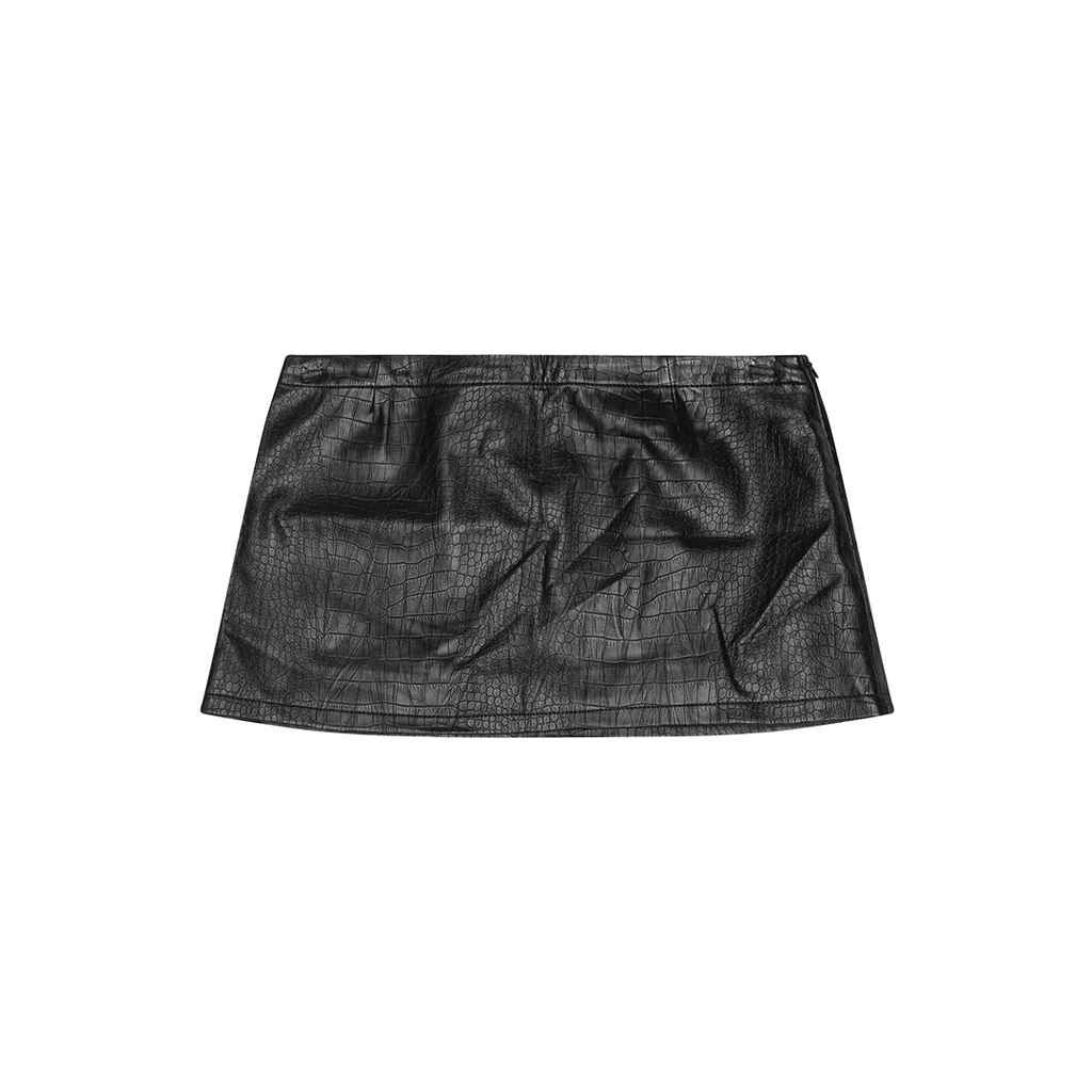 Miaou Black Fig Miniskirt feature croc-embossed faux leather design, side zip closure and full mesh lining.