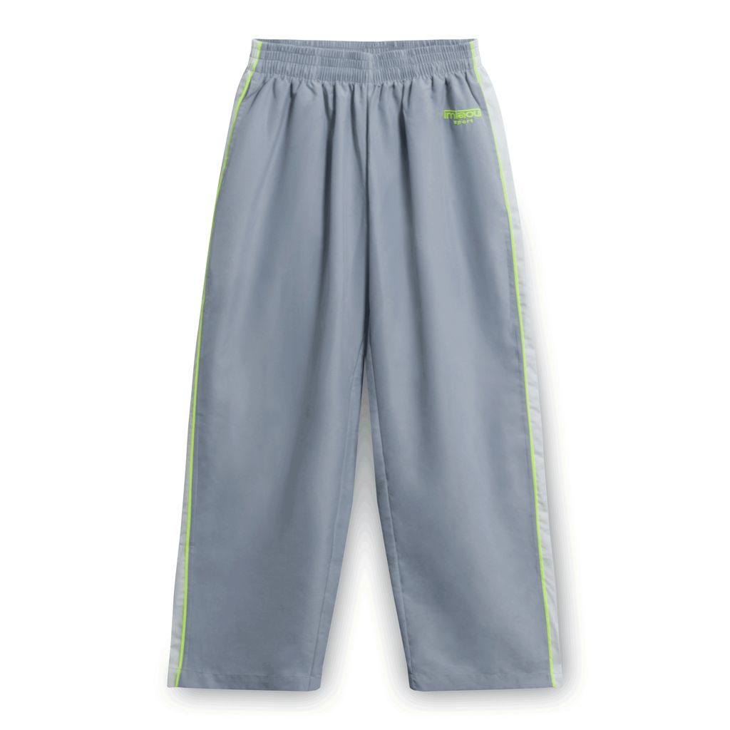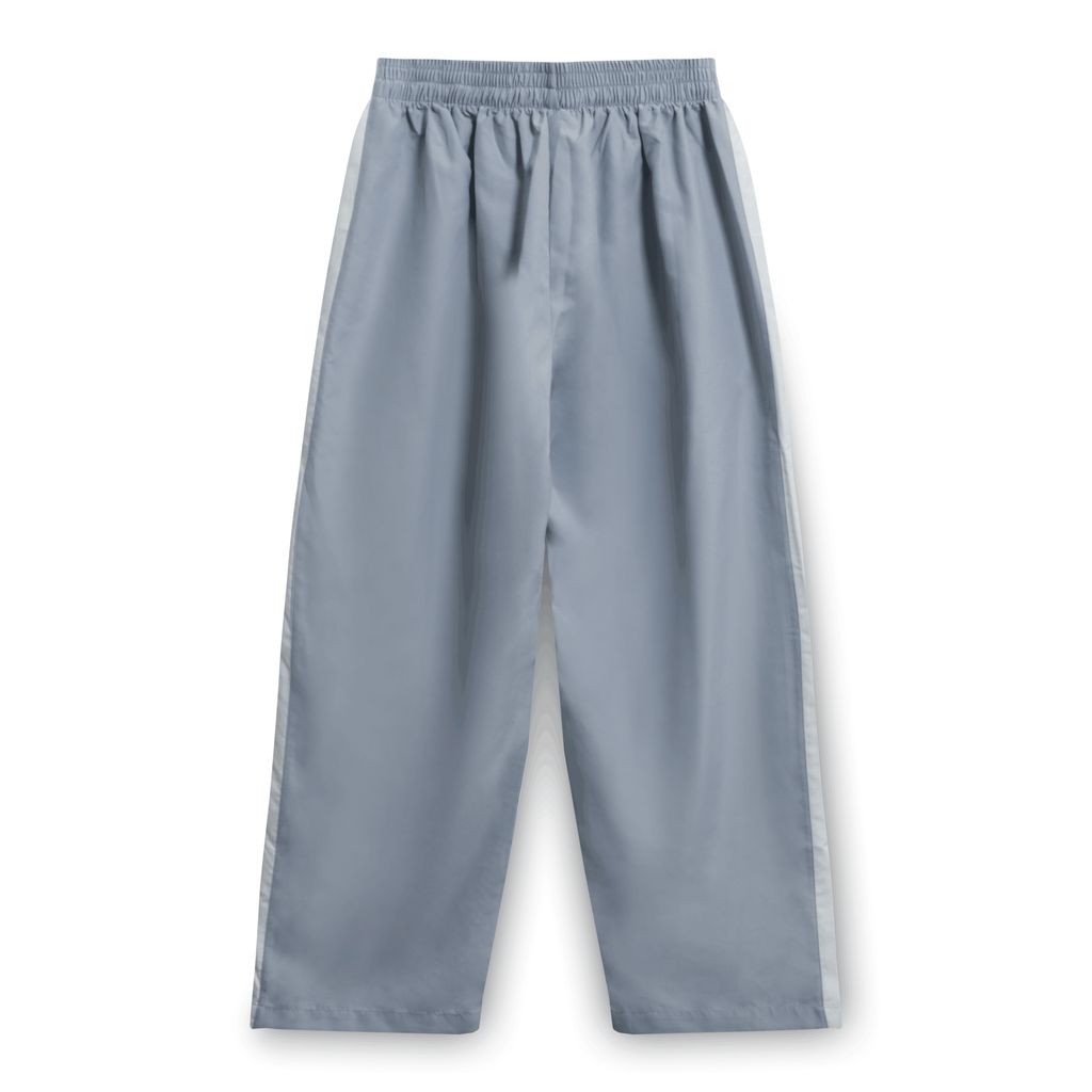 These wide-leg Miaou Sport track pant hits below the ankle with contrasting side panels. Featuring a covered elastic waistband with drawstring cords, embroidered logo on hip, and slant hip pockets. New with tags.