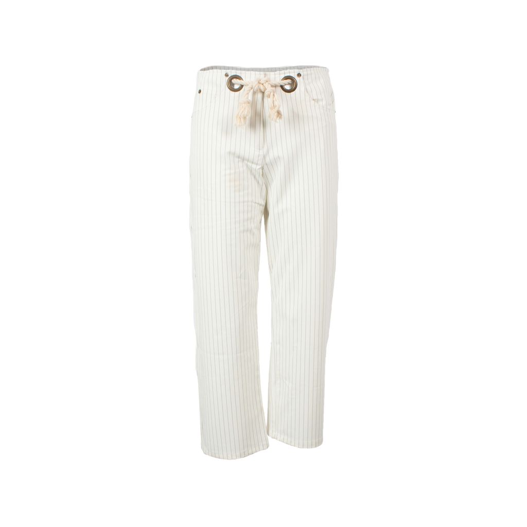 From cool girl pant atelier Miaou, this pair of fashionable trousers is casual enough to be comfortable and classy enough to wear to the office with your favorite blouse. Features rope belt that snakes through grommets around waist, straight leg shape, zip and slide waist closure, and sets of front and back pockets.