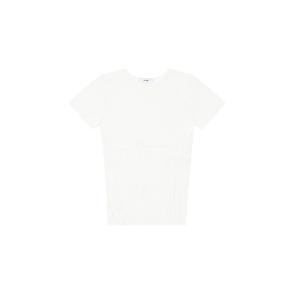 Miaou White Boned Tee fetures corset design with boning, scoop neck, and stretching slightly sheer fabric.