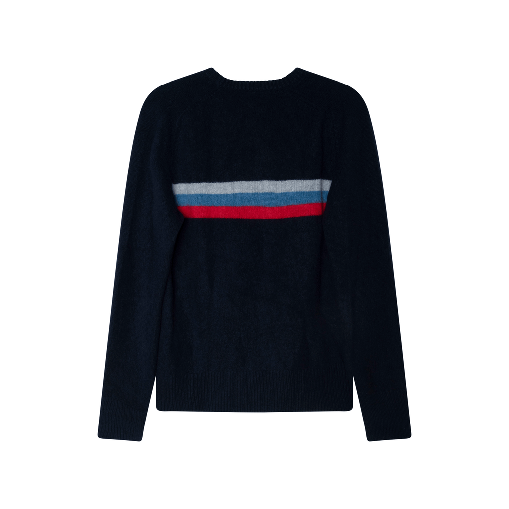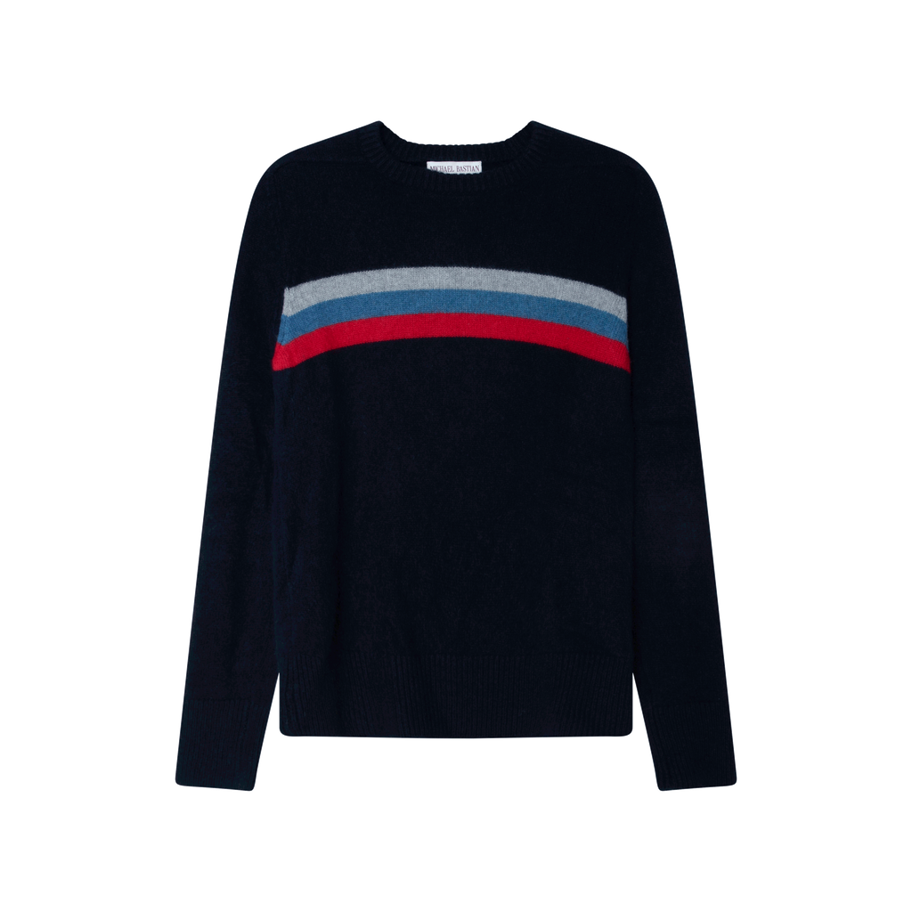 Michael Bastian Striped Cashmere Sweater features 3 stripe design around chest, slim fit, and ribbed collar, cuffs, and waistband.