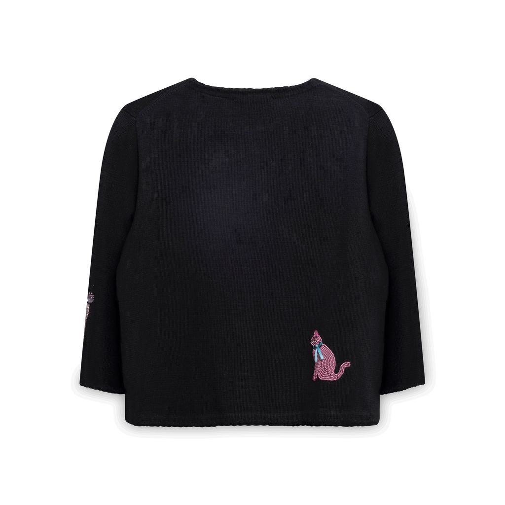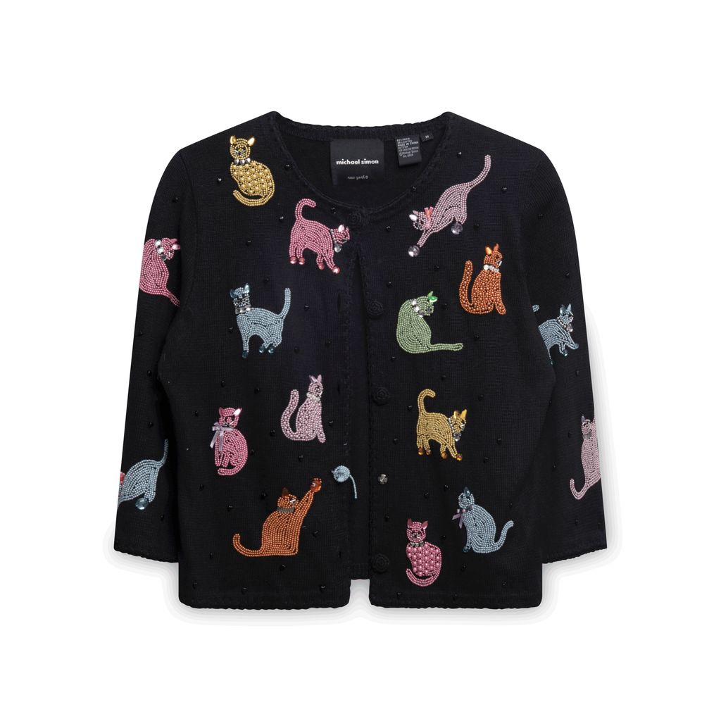 Michael Simon Beaded Animal Sweater features button up closure, various beaded animals throughout.