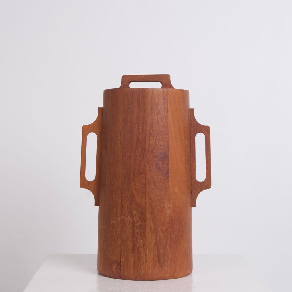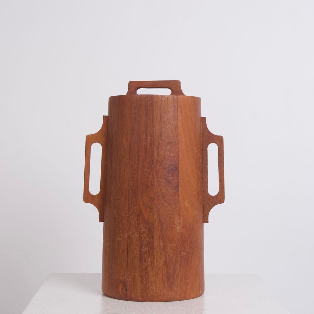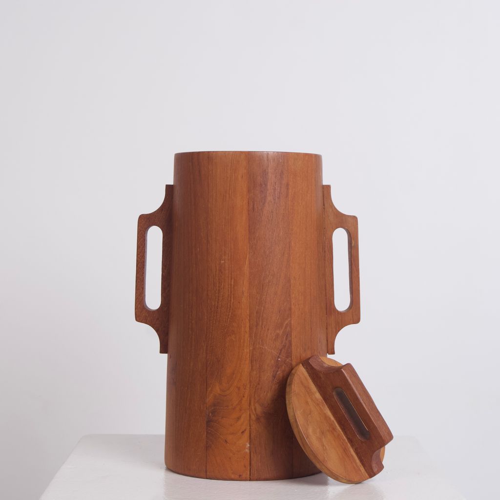 Mid Century Solid Teak Rare Ice Bucket Designed by Jens Quistgaard for Dansk. Dansk early production, with black liner, great vintage condition. 9" x 7" x 14" h