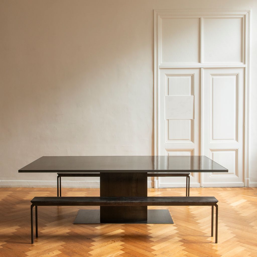 Steel, Betonplex, 725 x 1210 x 2410mmNoir Métal was founded in 2020 by French artists Nicolas Bourthoumieux and Julien Dumond. Their collaboration, now based at the Brasseries Atlas in Brussels, initially began at La Cambre, where Bourthoumieux lectured Dumond. Specializing as blacksmiths, they create stately pieces that serve as supports, frames, pedestals, and light fixtures for exhibitions. Their practice is a melding of craftsmanship, design, sculpture, and scenography, in which their tendency to repurpose materials blurs the boundaries between said disciplines.