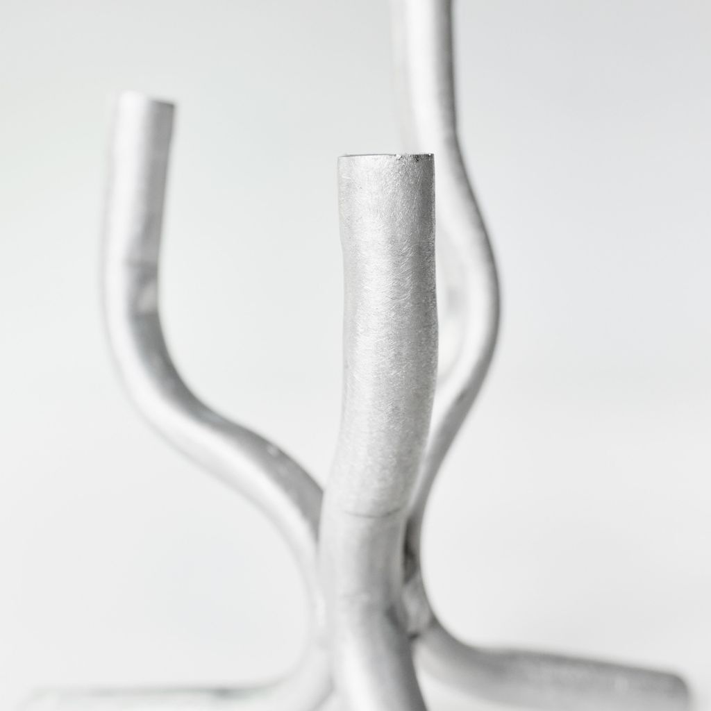 In Six Dot's signature raw aluminium, the piece blends seamlessly into any colour pallet or interior. At each stage of the design there was a commitment to showing the hands of the maker in the piece, each grind mark, scratch and scuff revel a story about the tools and hands that created the piece.