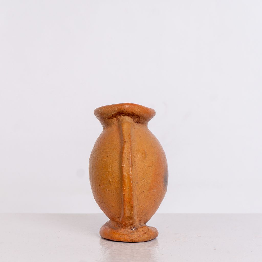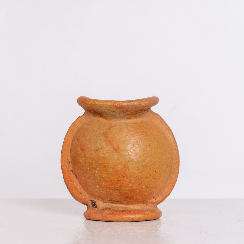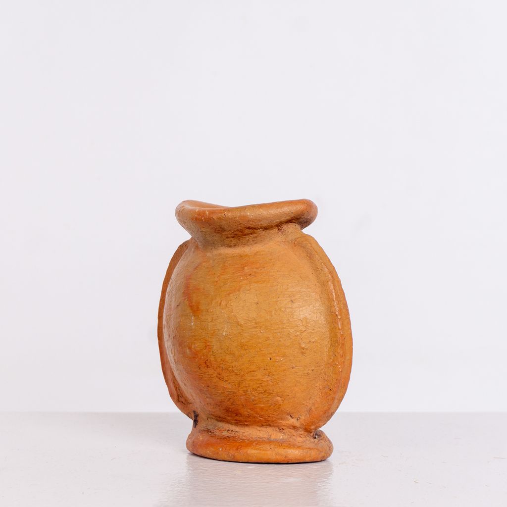 The vessel's warm, earthy orange hue adds a touch of rustic charm, making it a versatile addition to any decor. Elevate your space with this handcrafted piece that encapsulates the essence of Mexican craftsmanship and culture. 3.5" x 6" x 6.25"