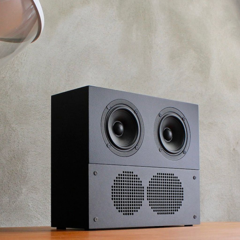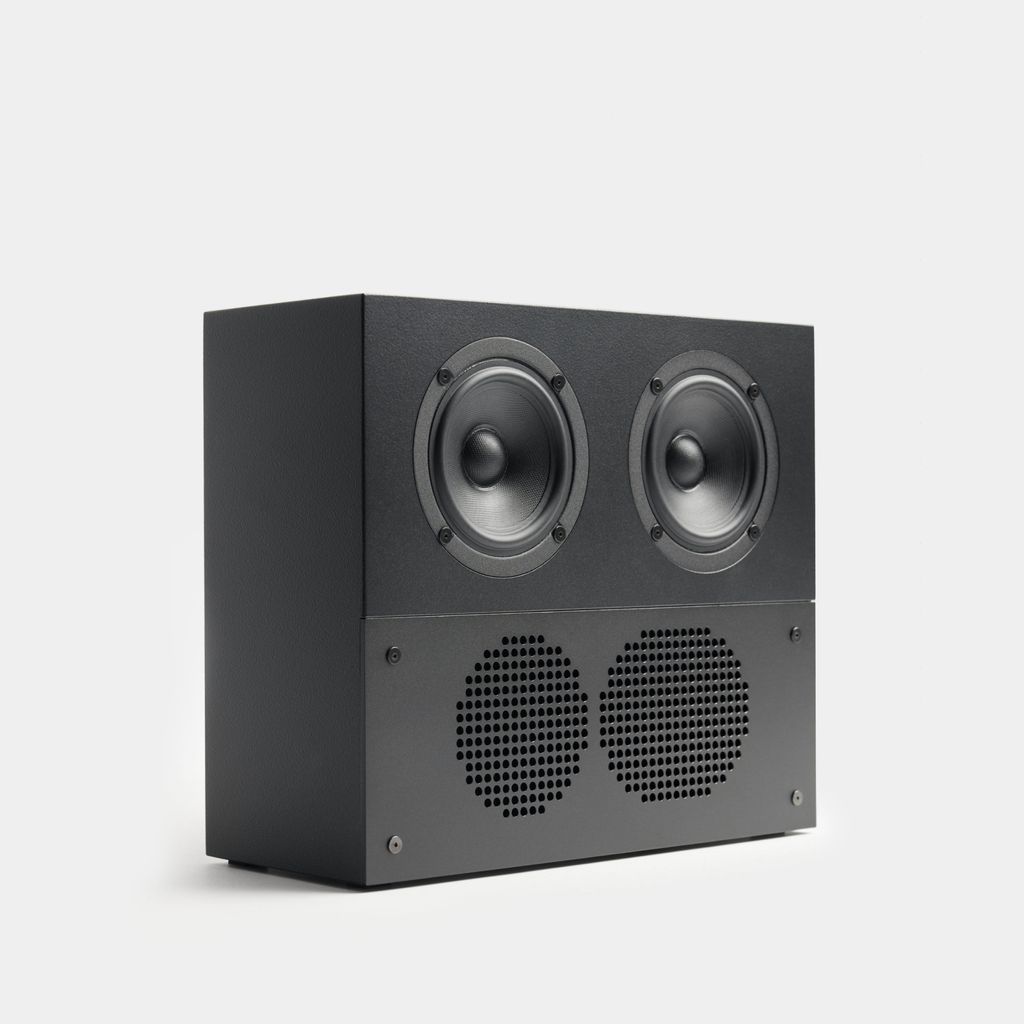 The anodized aluminum plate that covers the passive radiator showcases a meticulously perforated pixel pattern, giving Mini a timeless look.