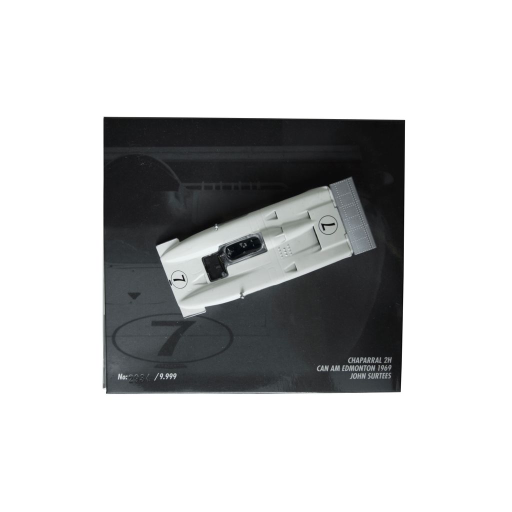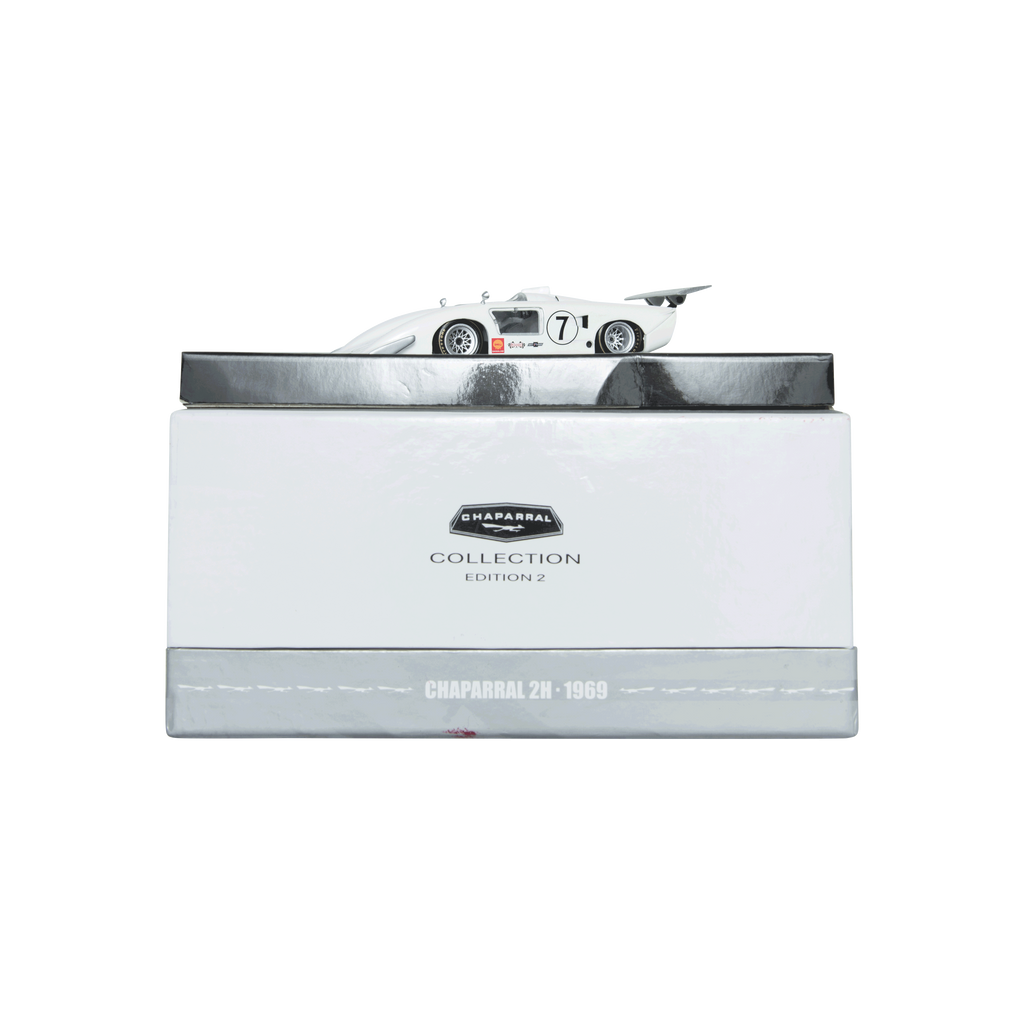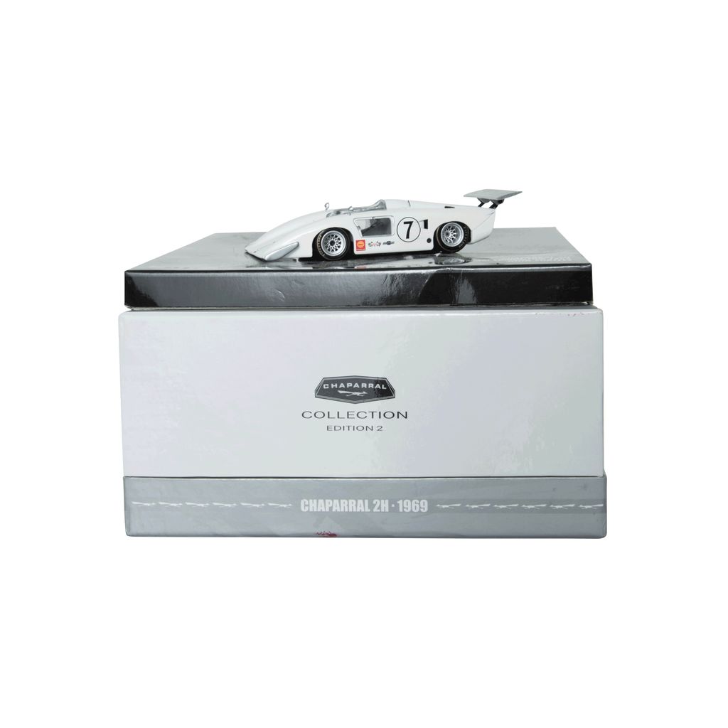 Minichamps Chaparral 2H-1969 1:43 Model features miniature white car model.