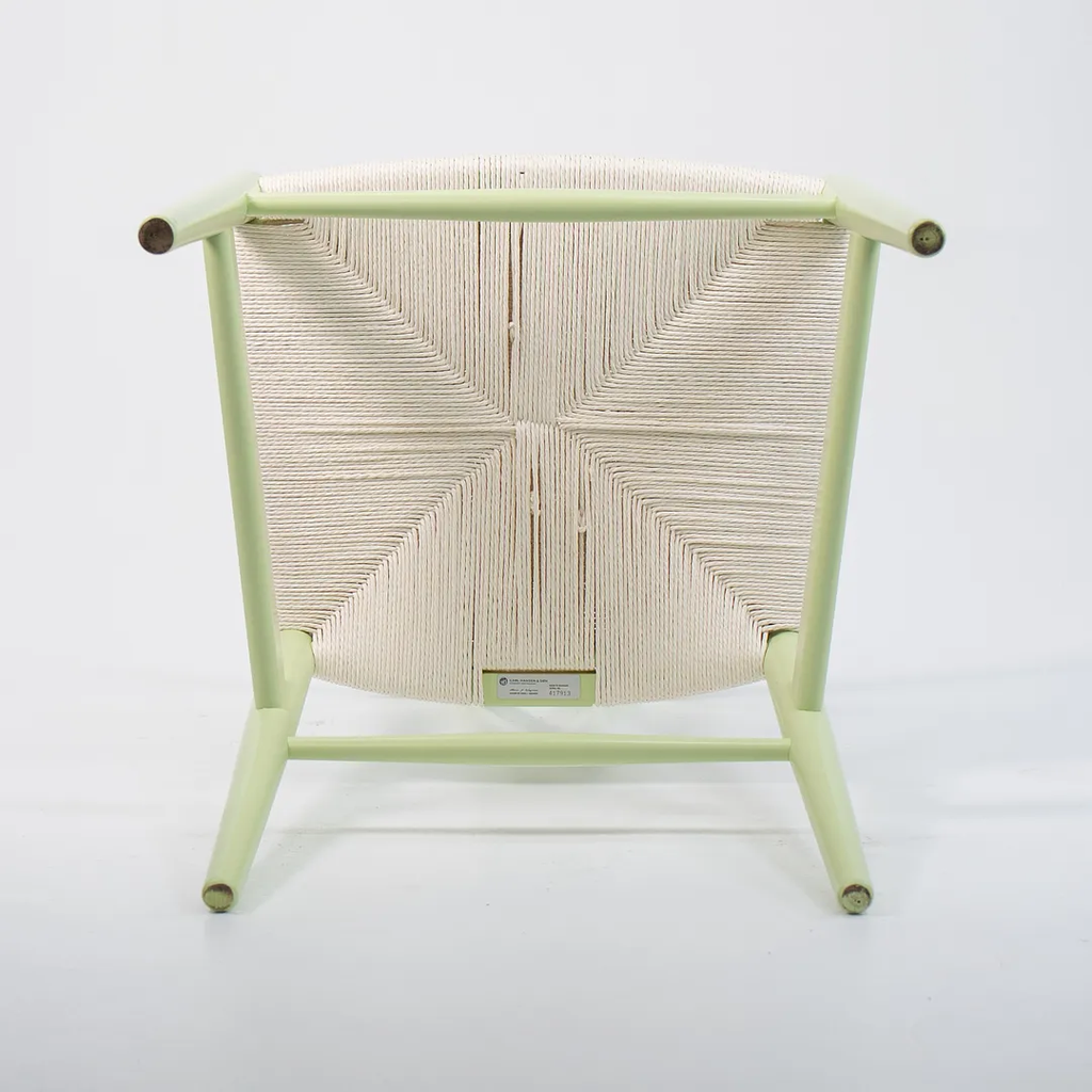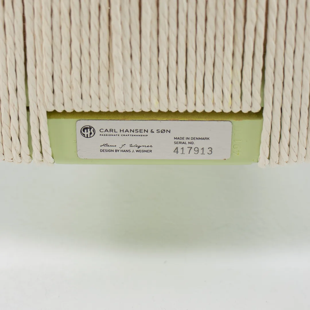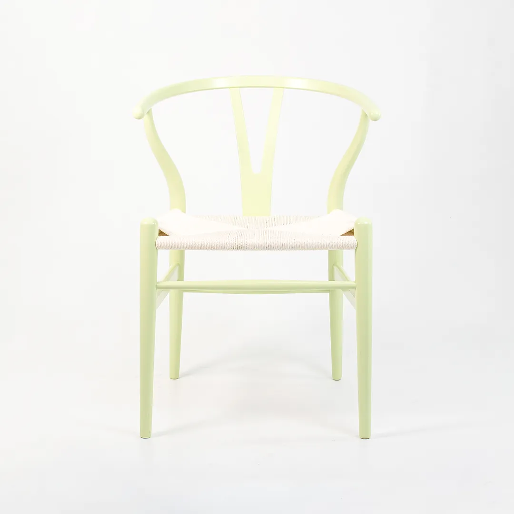 This is a CH24 Wishbone Dining Chair designed by Hans Wegner and produced by Carl Hansen & Son in Denmark. The chair is made with a solid beech frame, painted mint green with a white paper cord seat. This chair dates to circa 2021 and is guaranteed as authentic. Condition is excellent with only minimal wear. See photos. This chair came directly from Carl Hansen. It was likely never used in a home or office setting but may have been a display model within their showroom.