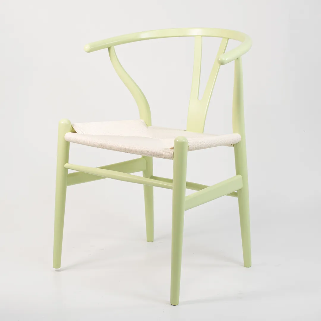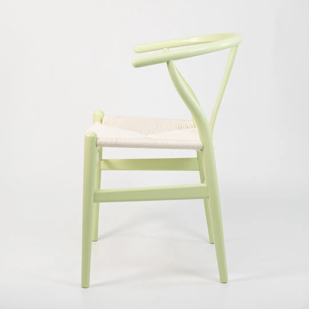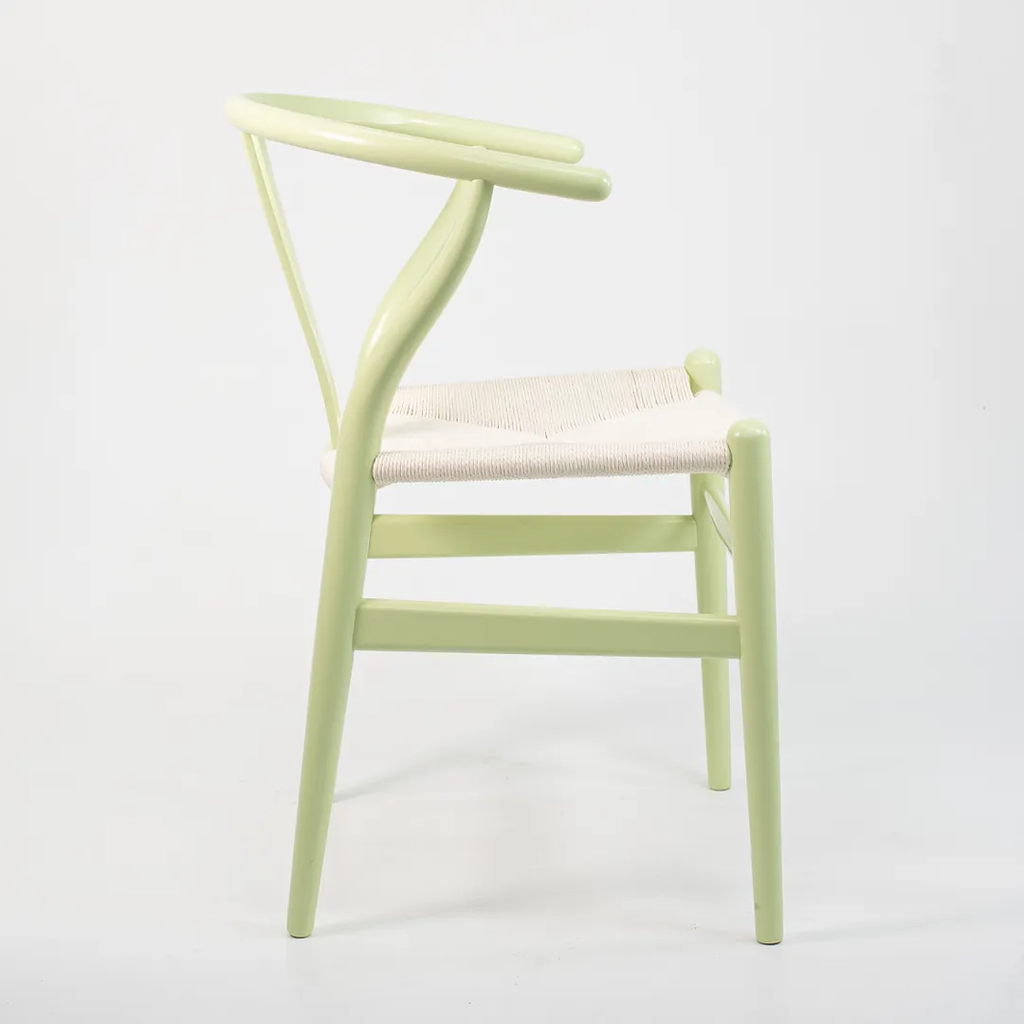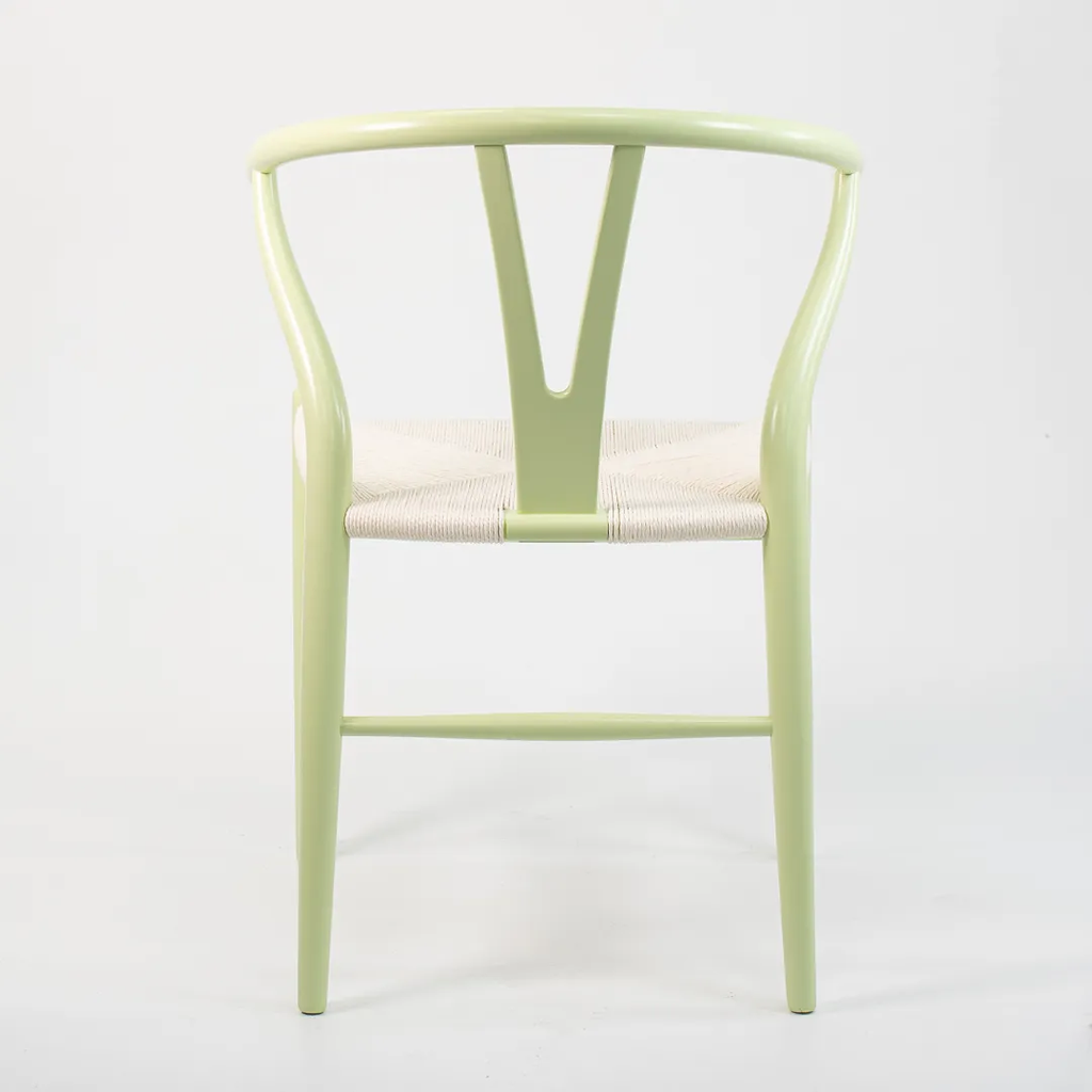 This is a CH24 Wishbone Dining Chair designed by Hans Wegner and produced by Carl Hansen & Son in Denmark. The chair is made with a solid beech frame, painted mint green with a white paper cord seat. This chair dates to circa 2021 and is guaranteed as authentic. Condition is excellent with only minimal wear. See photos. This chair came directly from Carl Hansen. It was likely never used in a home or office setting but may have been a display model within their showroom.