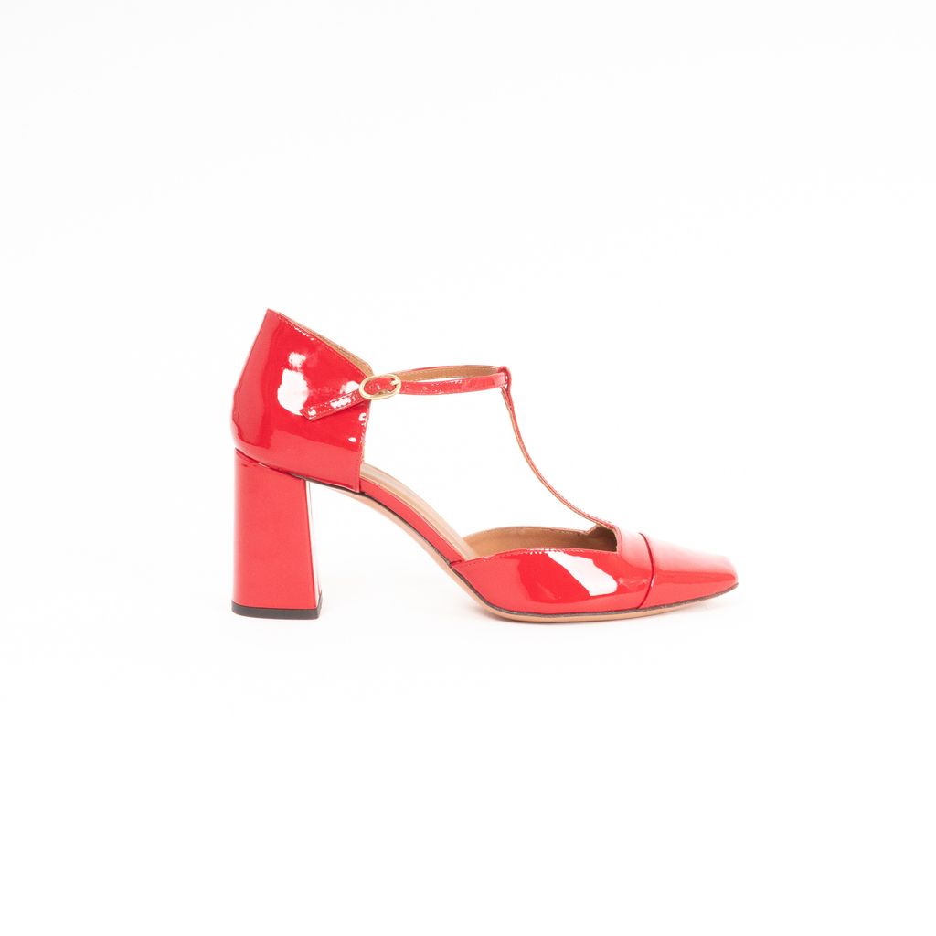 These gorgeous candy colored T-strap heels from Mirae are like having your own personal pair of ruby slippers. Features T-strap top with adjustable ankle strap, closed heel, square toe cap, and 3" heel height.
