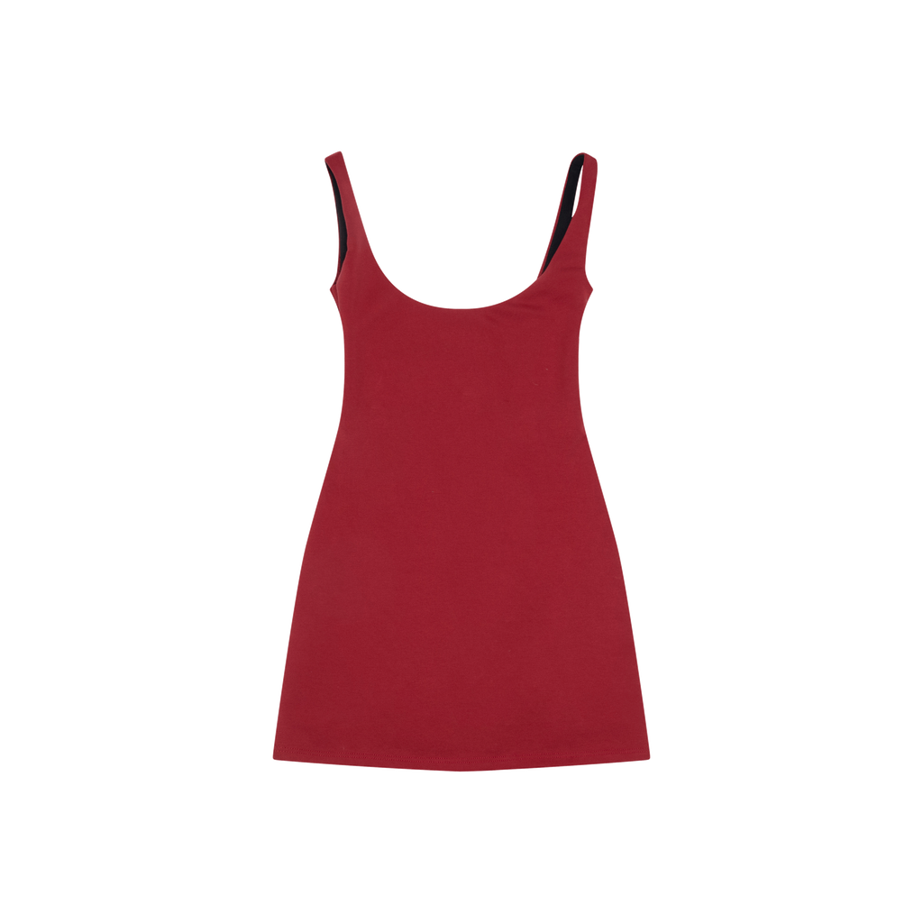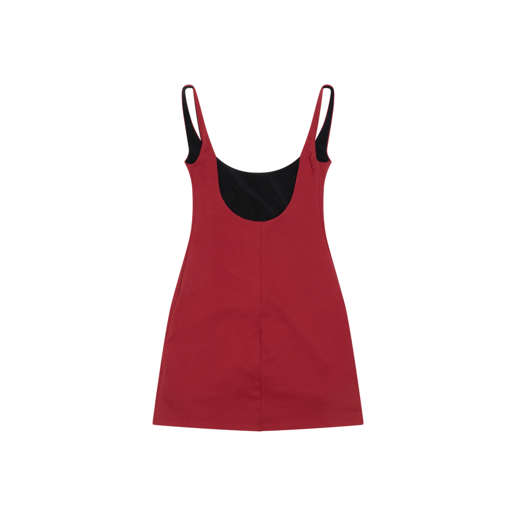 Mirror Palais Red Lady Di Minidress features scoop neck, low plunging back, and integrated mesh liner.