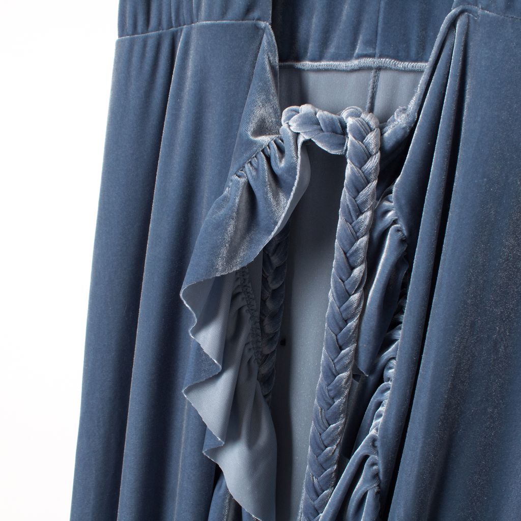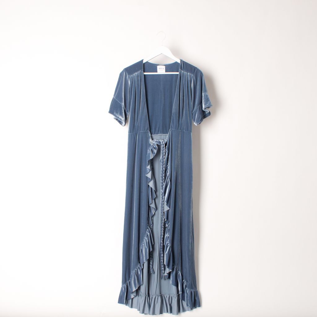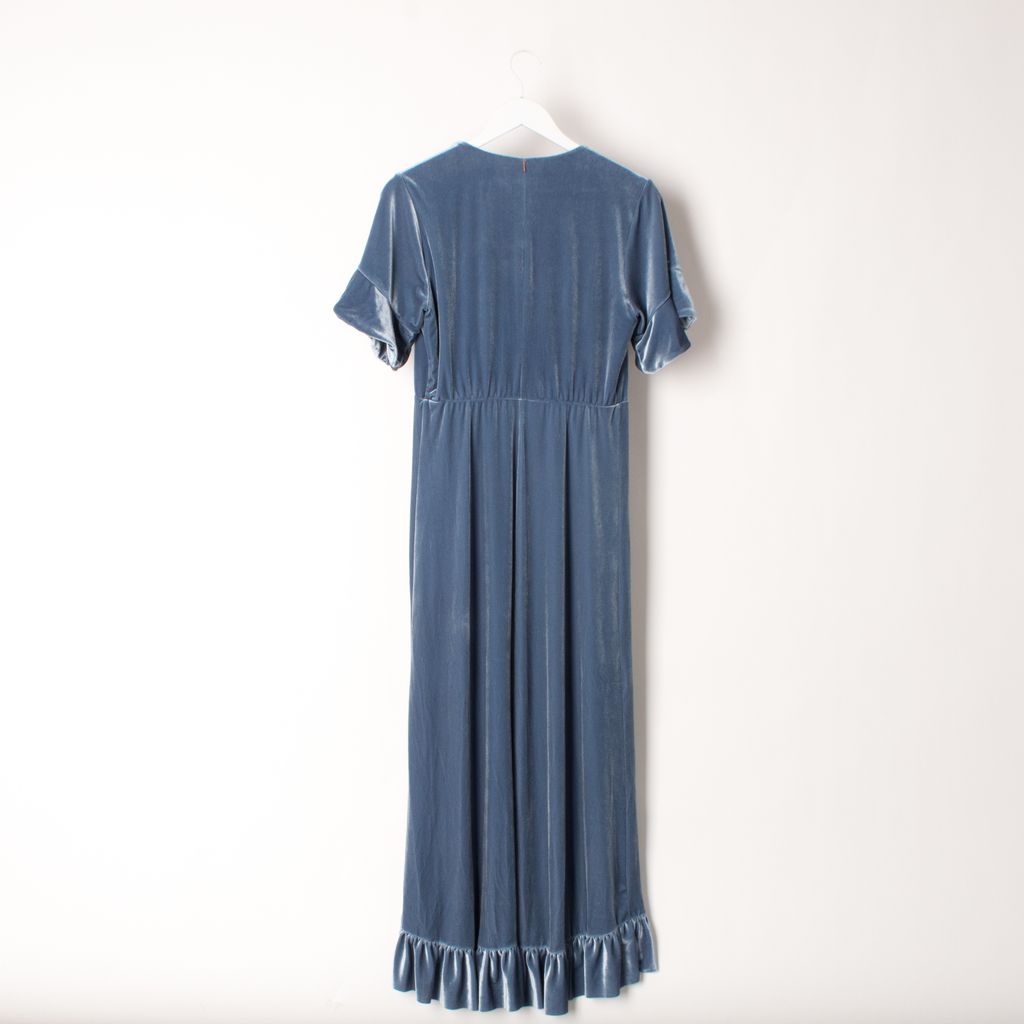 Vintage style Carolina dress like new, velvet with flutter sleeves, a low neck and a braided tie belt.