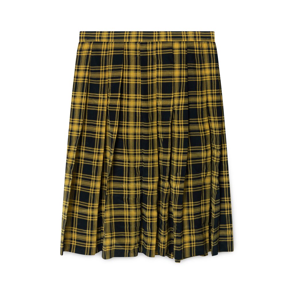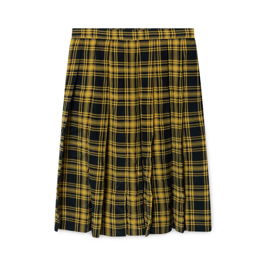 Miss O by Oscar de la Renta Plaid Skirt features yellow and black patterning with silver clasp enclosures.