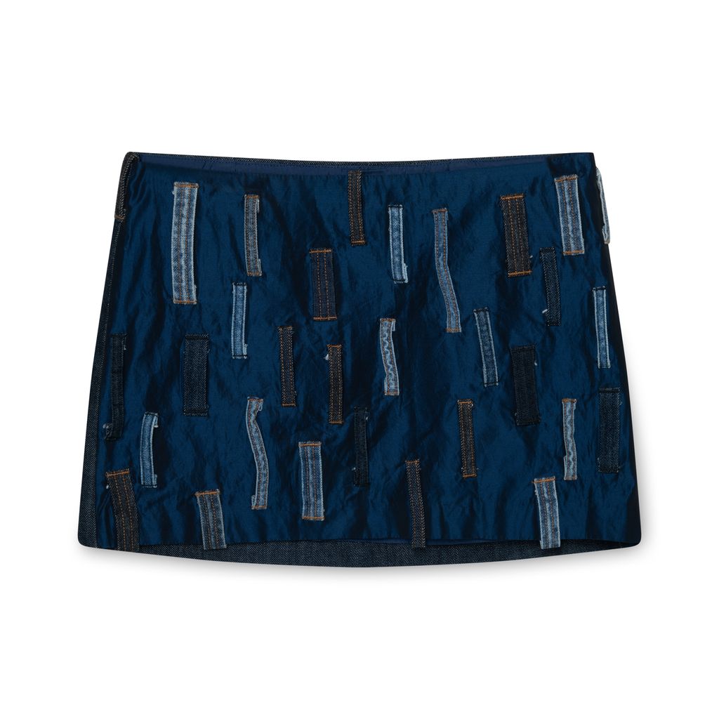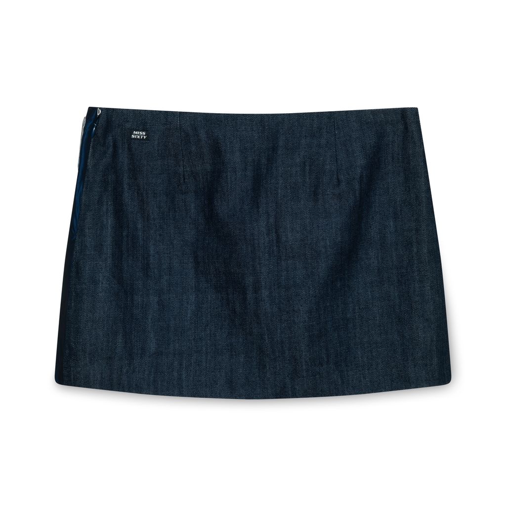 Miss Sixty Denim Belt Loop Mini Skirt features belt loop design on front, satin front panel, and low waist.