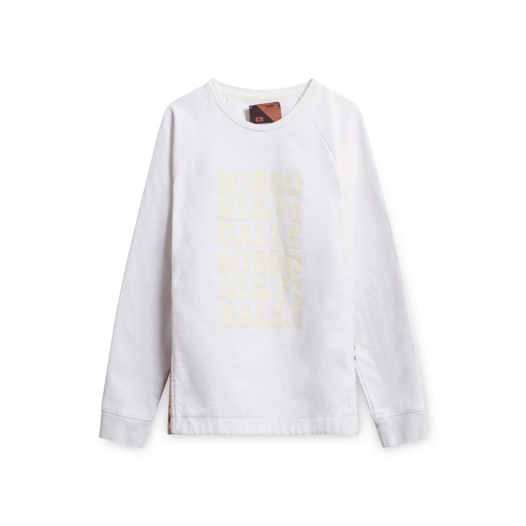 Missoni/Pigalle Embroidered White Sweatshirt features gold trim lining.