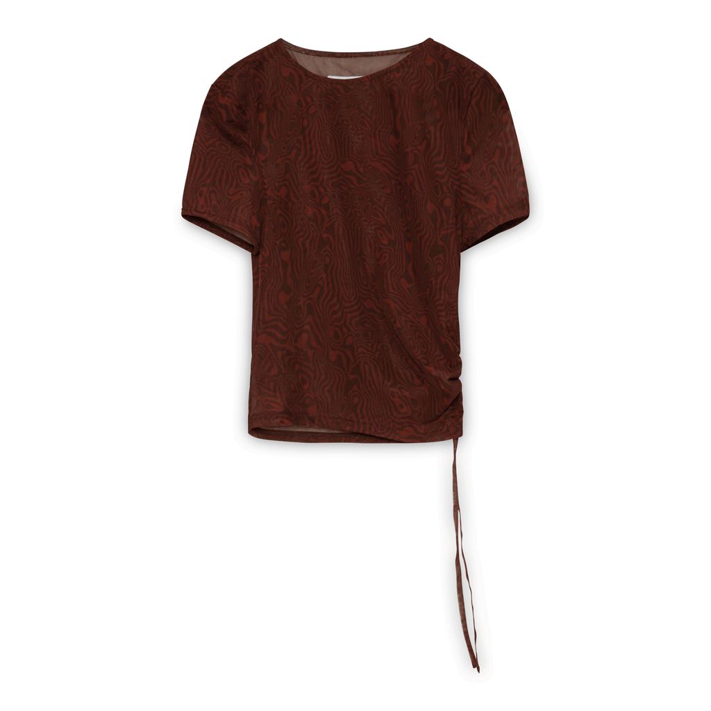 Mistress Rocks Mesh Shirt features psychedelic pattern throughout, optional strings at hem.