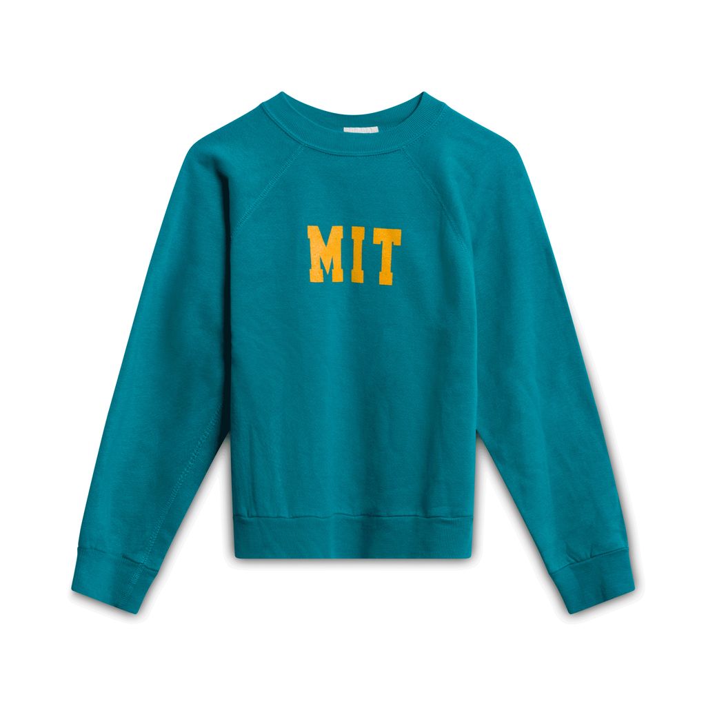 "I went to school in Cambridge." "No, the other one." This vintage turquoise crewneck flexes for you with its punchy yellow MIT logo printed on the front.