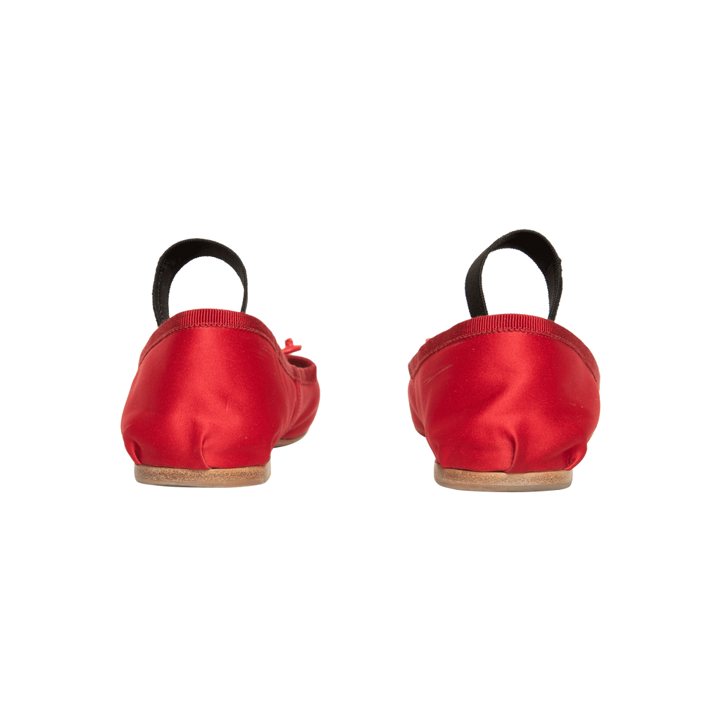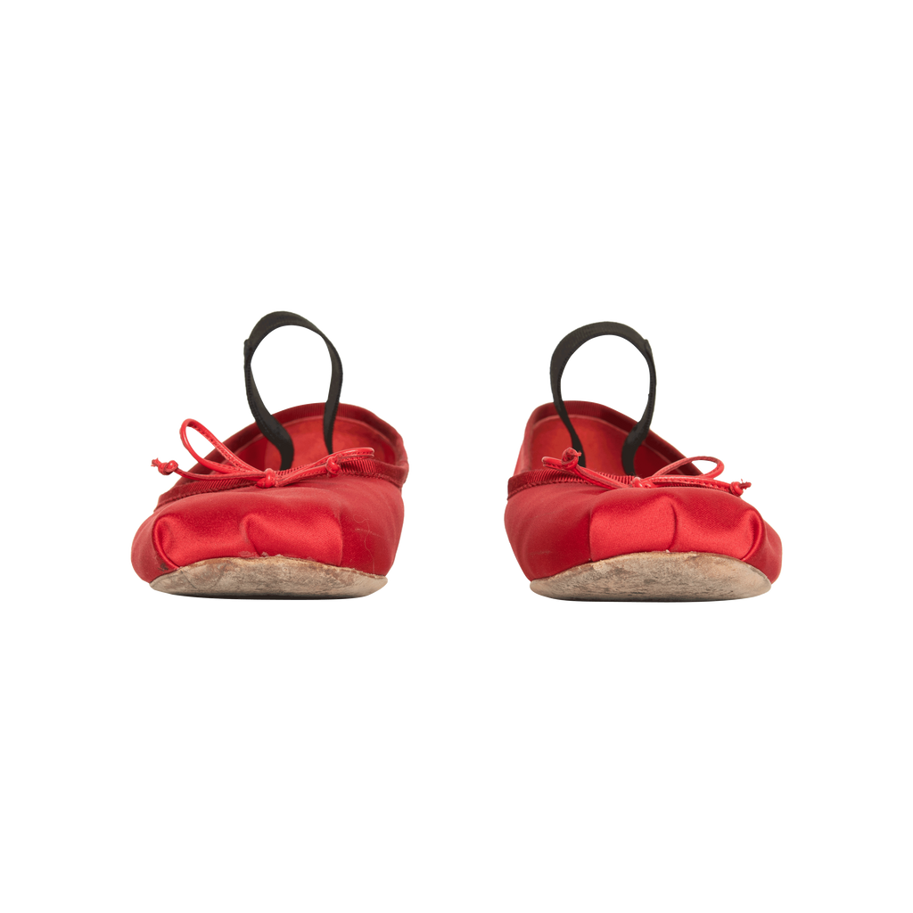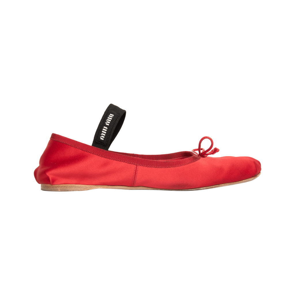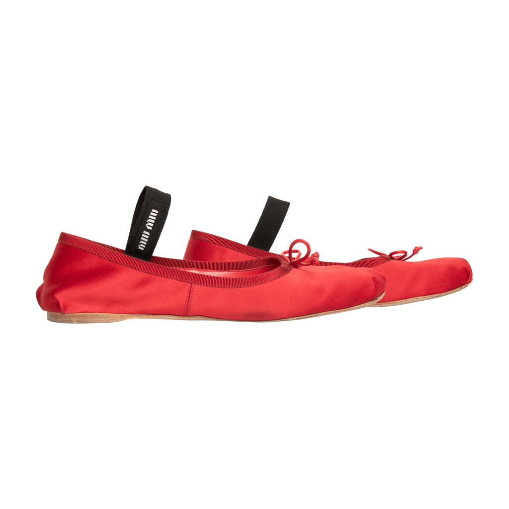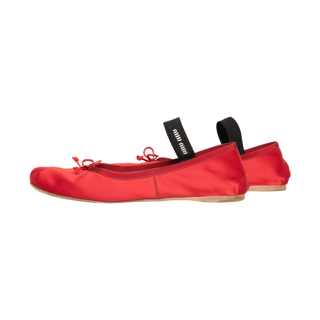 Red Miu Miu Ballet Flats. Features Upper with bow and elastic with knit logo label Fabric and knit logo label.