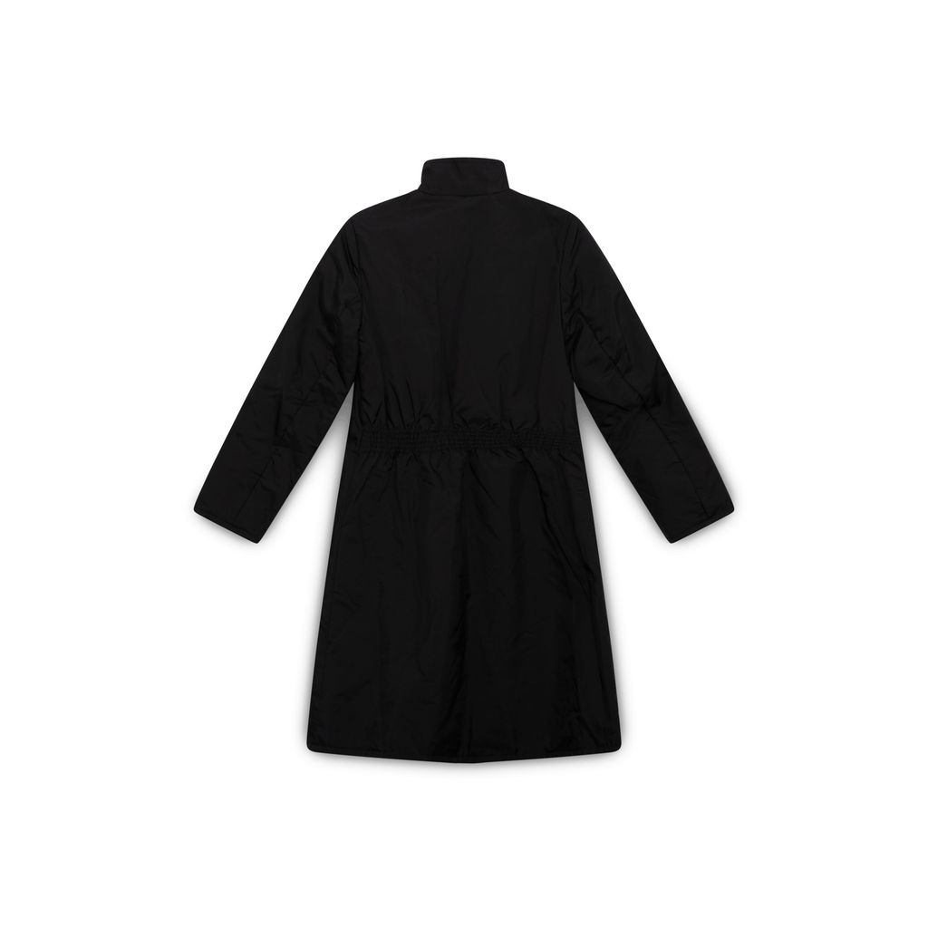 Miu Miu Black Long Nylon Jacket features zipper closure, yellow trim details and sinched back.