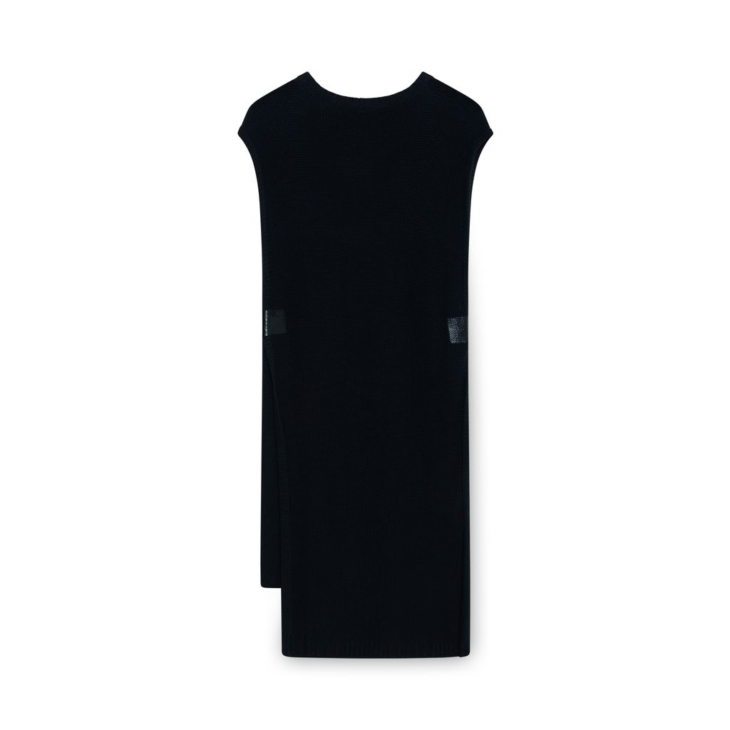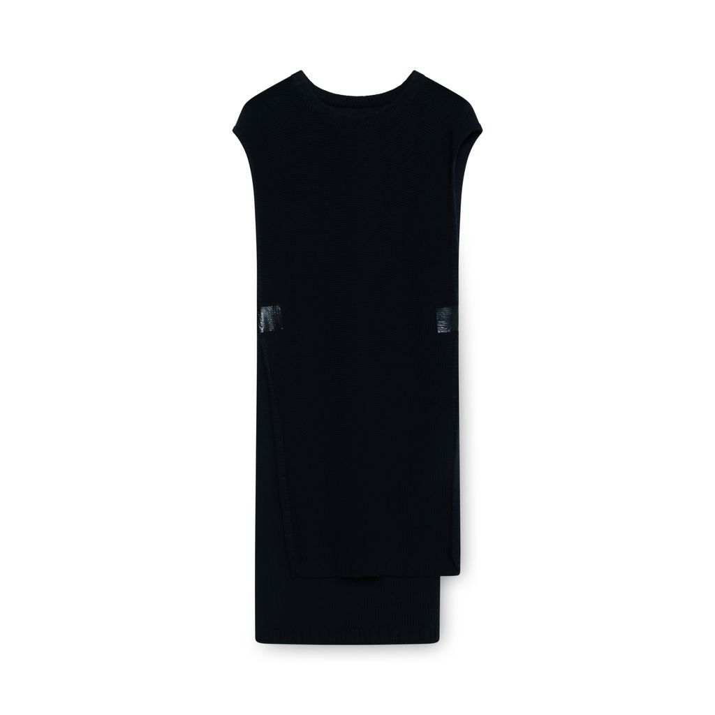 MM6 knitted tunic features crew neck, mock tape detail at side, slits at sides, and rib hemming.