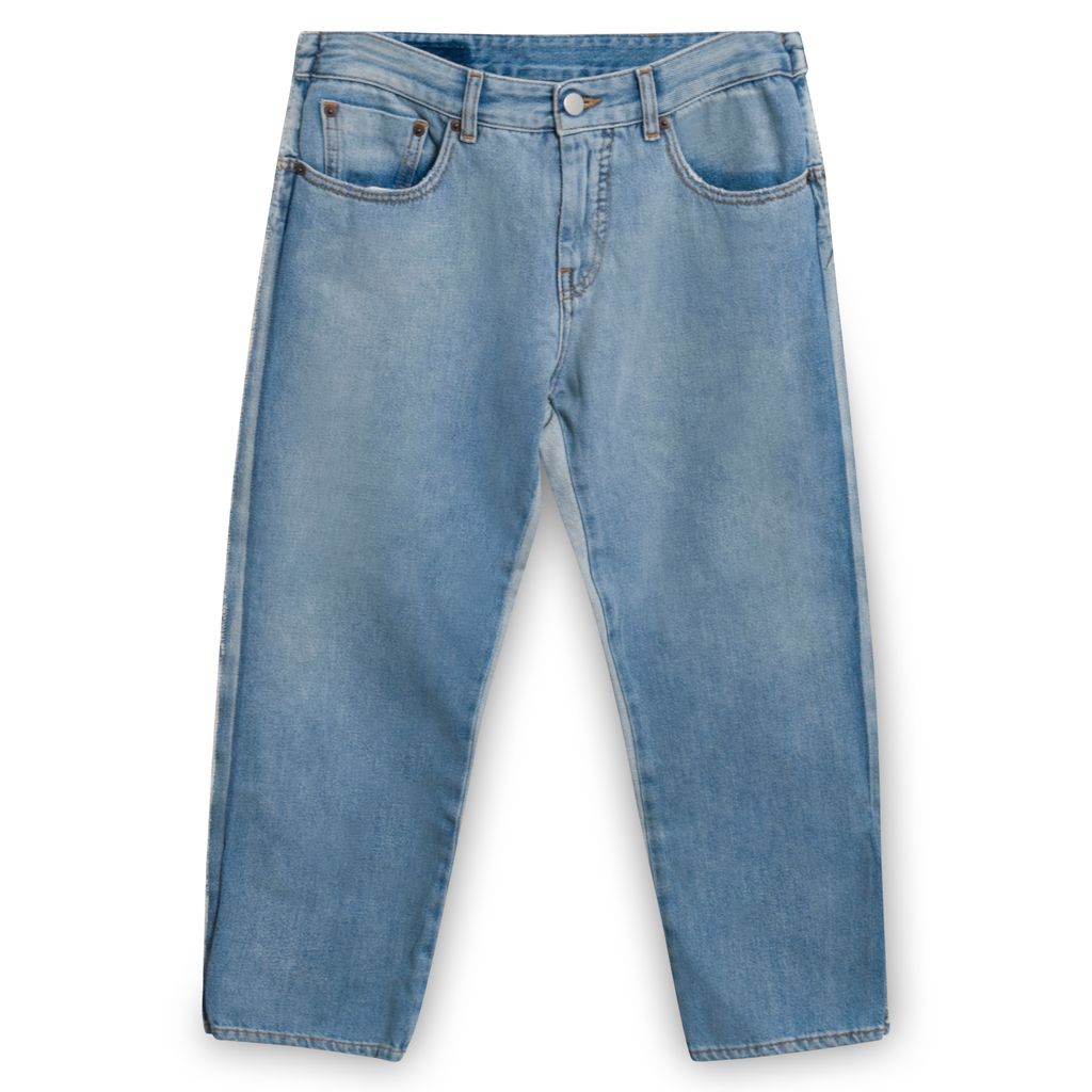 These denim jeans from Maison Margiela are uniquely crafted by using inside-out denim for the backside of the jean. The MM6 Maison Margiela's straight crop jean has raw-edge side seams, a button-zip closure, front pockets, and has a cropped silhouette. Brand new, tag attached.