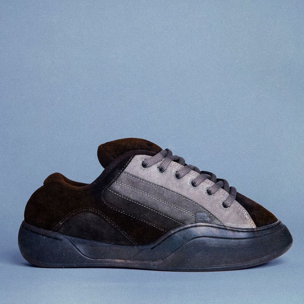 Washed in shades of deep mocha with an upper that is built from four-color leather panels, anchored by rich cowhide suede — each panel cut, placed, and stitched with precision.Inside, a unique woven interior wraps the foot with subtle texture, while articulated foam is shaped for plush, all-day comfort. Custom 9 millimeter thick ERL laces with dipped aglets thread through the leather upper, paired with an ERL-stamped tongue and an ERL gum sole.