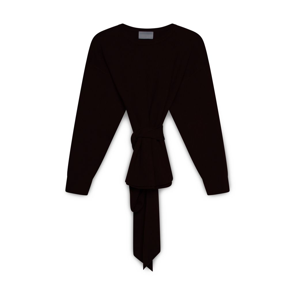 Modern Citizen sweater features crew neckline, long sleeve, and adjustable waist tie.