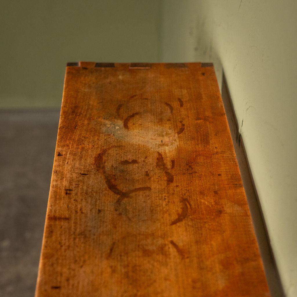 The surface shows a deep, even patina with visible traces of use, underscoring its age and history. Originally conceived as a utilitarian storage piece, the cabinet remains well suited for contemporary use as shelving, storage, or display furniture.