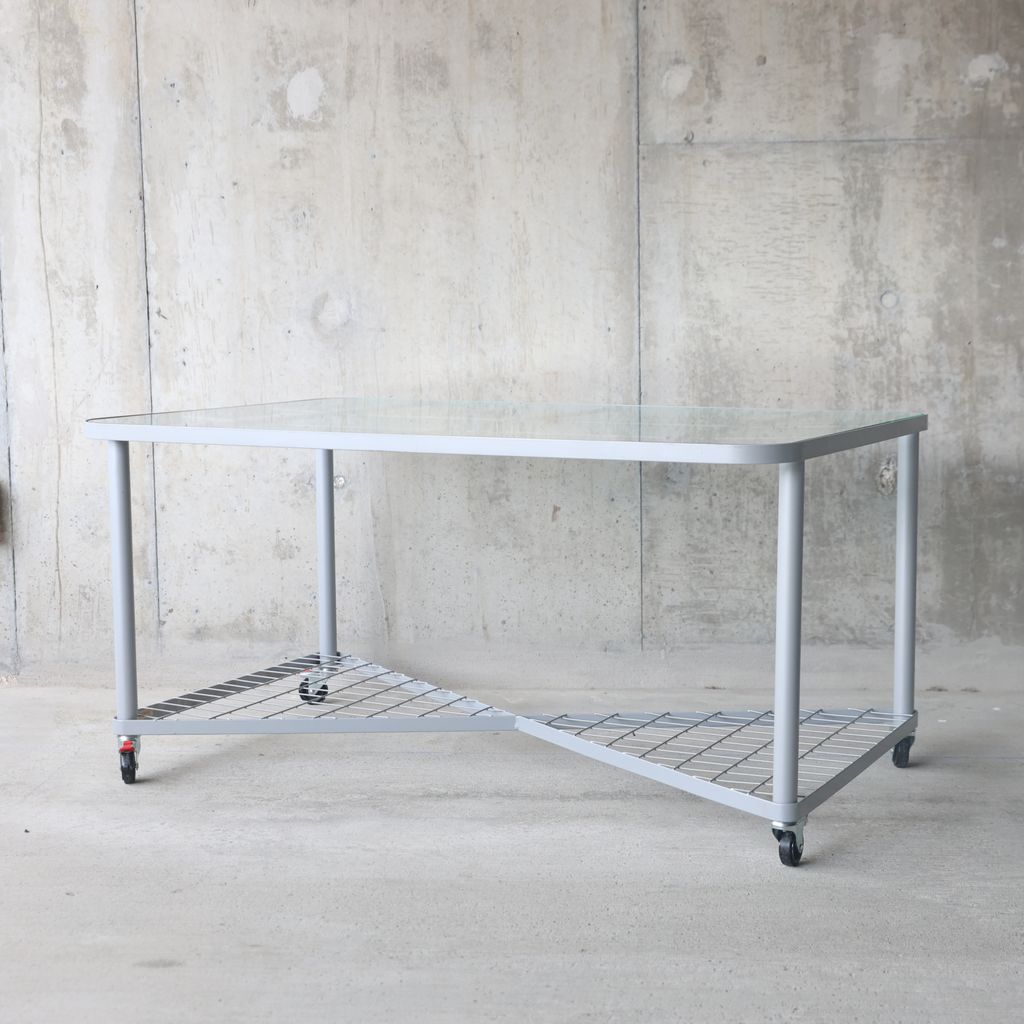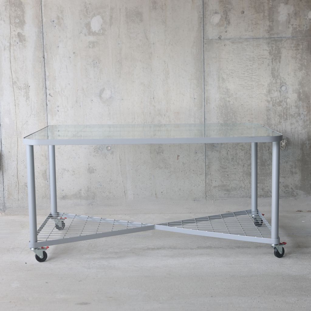 Moment Desk by Niels Gammelgaard for Ikea with clear glass top. In great condition with brand new glass top.