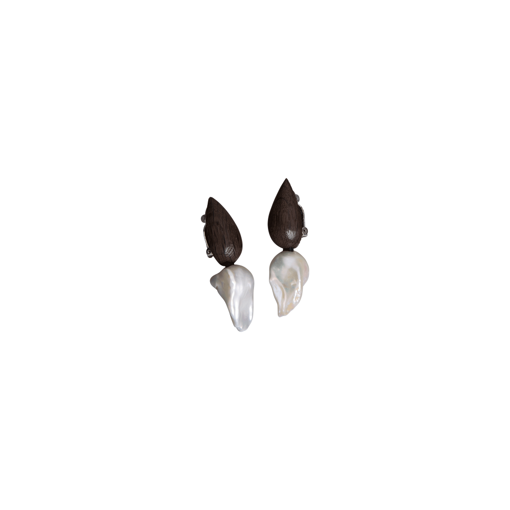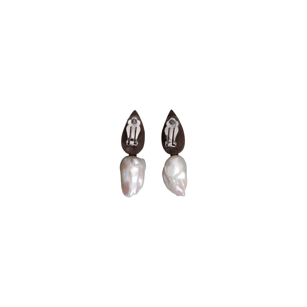 Monies Wood & Pearl Clip-On Earrings from strongblue.