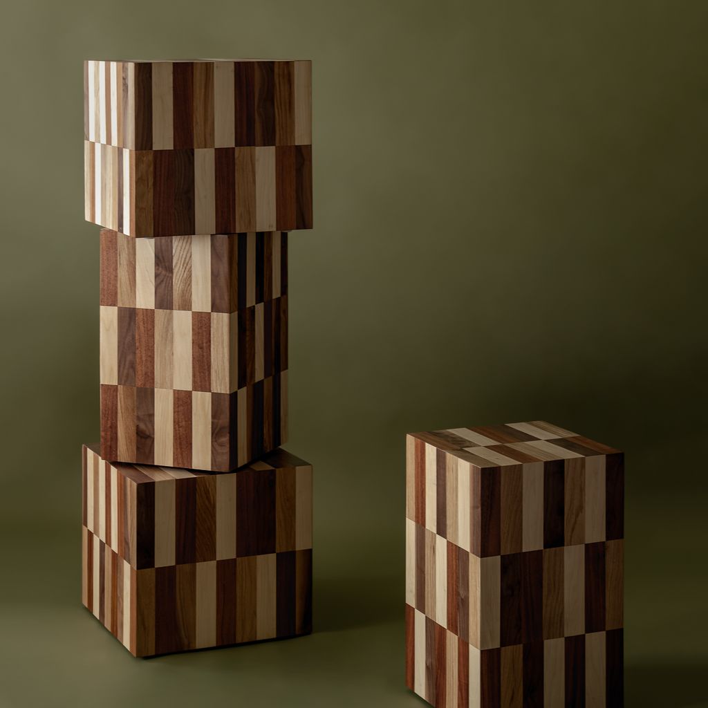 The MORA Auxiliary Table by Daniel Couttolenc celebrates the dialogue between precision and nature. Crafted from Tzalam, Oak, Maple, and Walnut, its surface interweaves these woods into a checkered symphony. Revealed at Design Week Mexico 2025, it invokes sacred geometry through visual texture and balance. Custom options available upon request.