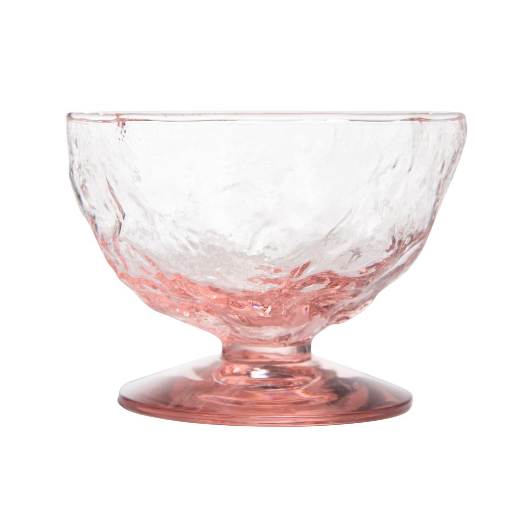 Morgantown Blush Crinkle Cups Set features 2 glasses with ridged detailing and light pink to clear coloring based on how the light catches. Made between 1930s - 1960s.