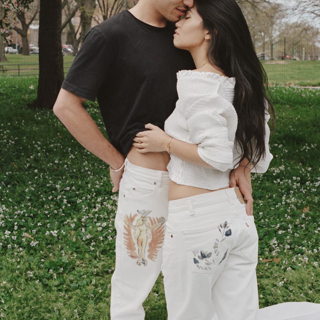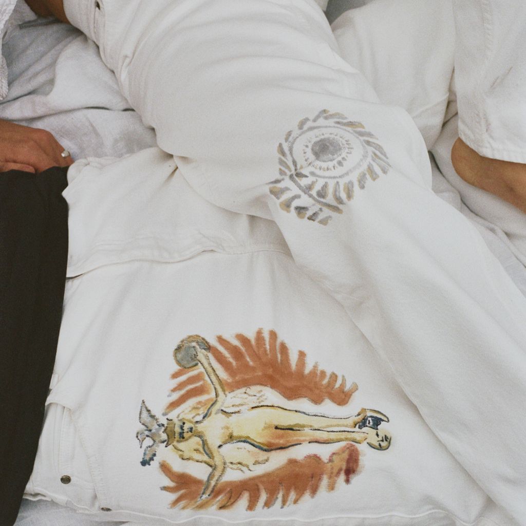 Mosaic Denim are vintage upcycled jeans that feature hand-painted artwork.