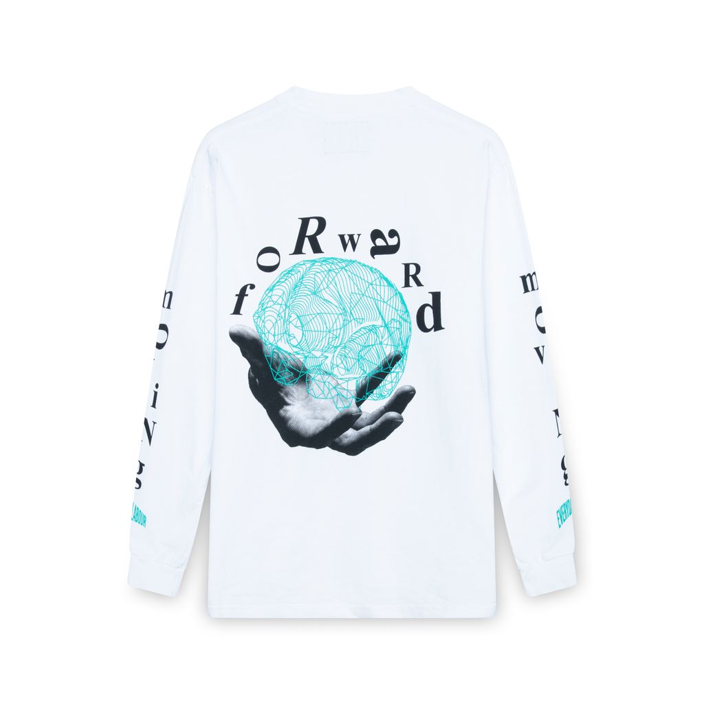 MOVING FORWARD LONG SLEEVE features graphics on arms and back.