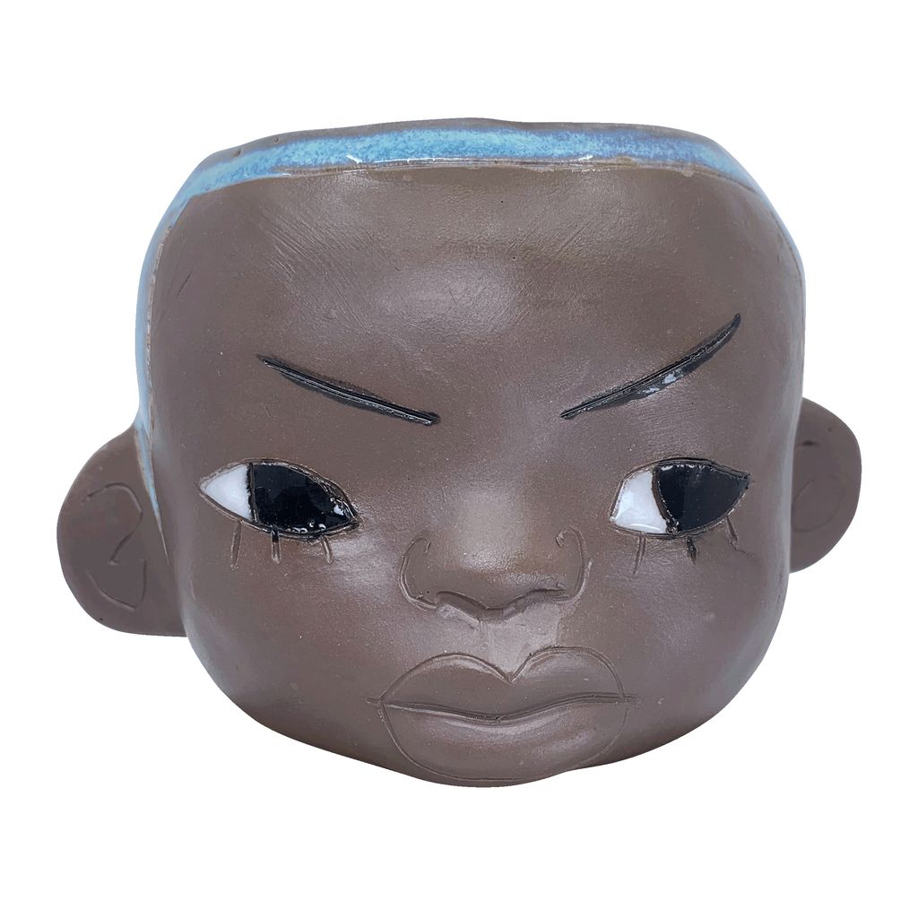 Mug 1 by Sydnie Jimenez are custom, handmade ceramic mugs inspired by the representation of black and brown youth and self-expression as a form of protest and care to protect against a Eurocentric society founded on white supremacy and colonization.