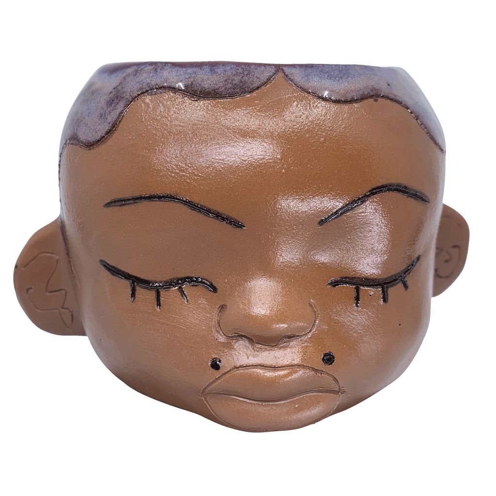 Mug 11 by Sydnie Jimenez are custom, handmade ceramic mugs inspired by the representation of black and brown youth and self-expression as a form of protest and care to protect against a Eurocentric society founded on white supremacy and colonization.