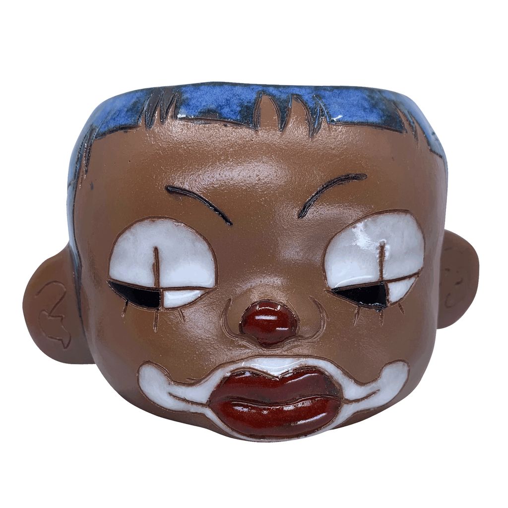Mug 2 by Sydnie Jimenez are custom, handmade ceramic mugs inspired by the representation of black and brown youth and self-expression as a form of protest and care to protect against a Eurocentric society founded on white supremacy and colonization.
