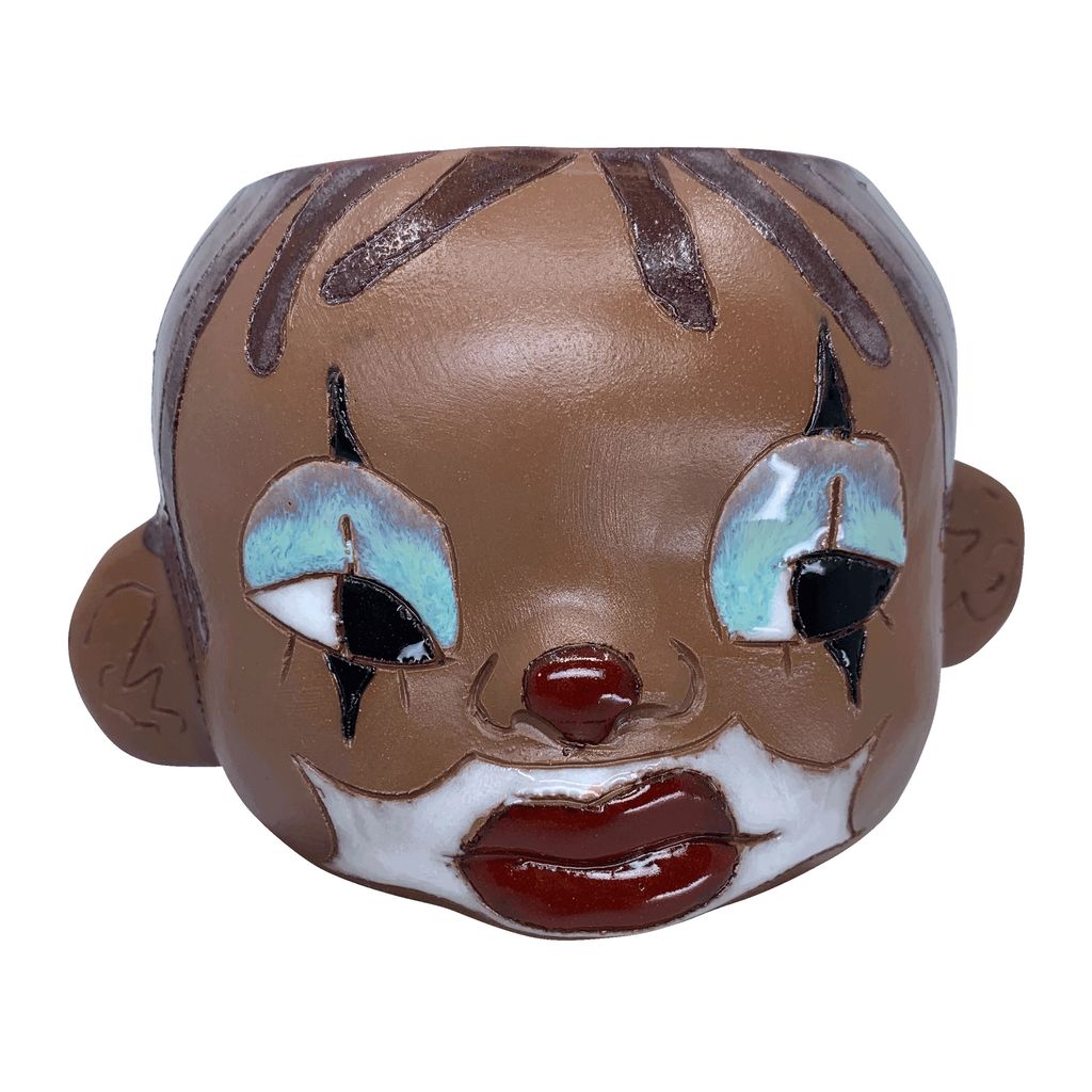 Mug 6 by Sydnie Jimenez are custom, handmade ceramic mugs inspired by the representation of black and brown youth and self-expression as a form of protest and care to protect against a Eurocentric society founded on white supremacy and colonization.