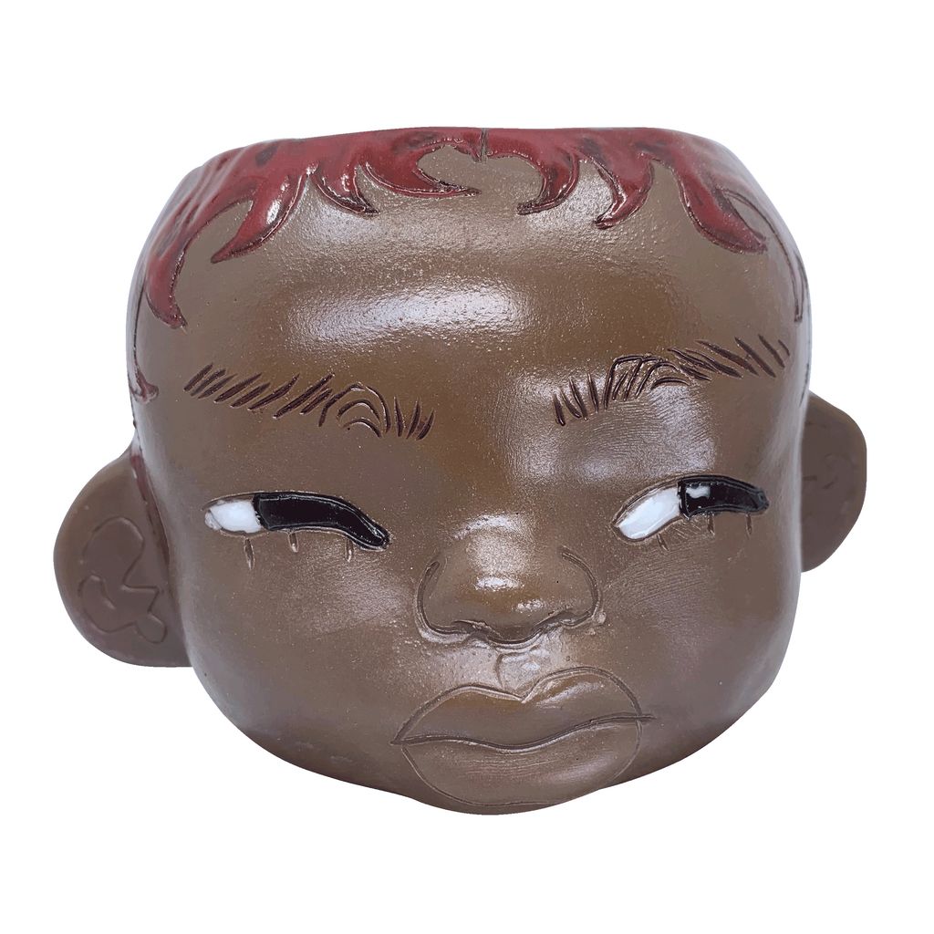 Mug 7 by Sydnie Jimenez are custom, handmade ceramic mugs inspired by the representation of black and brown youth and self-expression as a form of protest and care to protect against a Eurocentric society founded on white supremacy and colonization.