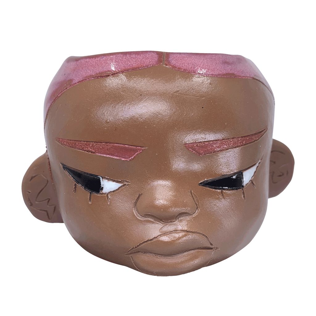 Mug 8 by Sydnie Jimenez are custom, handmade ceramic mugs inspired by the representation of black and brown youth and self-expression as a form of protest and care to protect against a Eurocentric society founded on white supremacy and colonization.