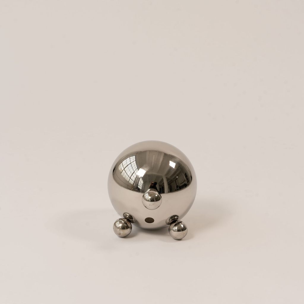 The Selene Planter is made of hand-spun stainless steel and is suitable for indoor and outdoor use. The planter is pre-drilled with three drain holes.