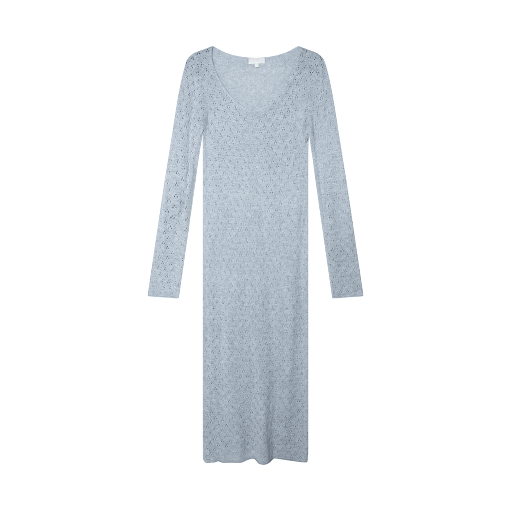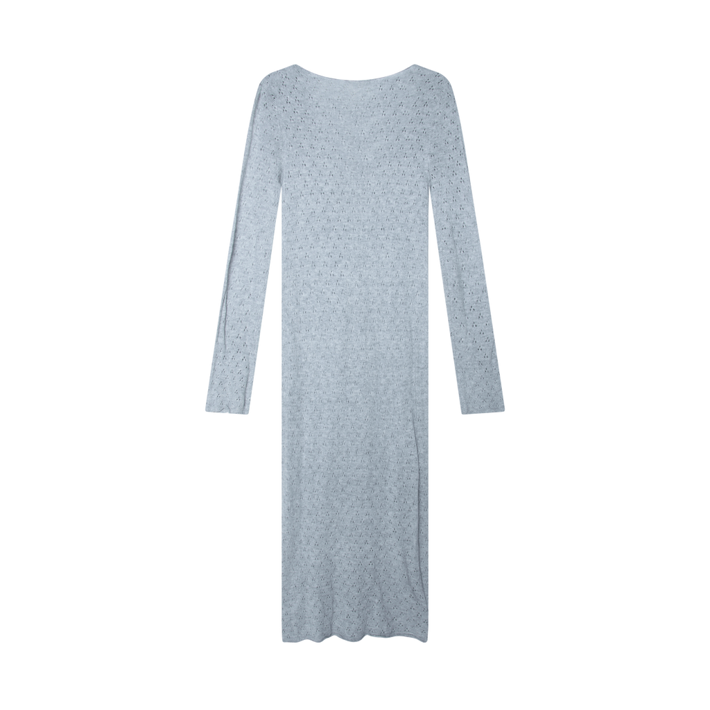 My Mum Made It Grey Knit Dress features small knit cut out designs, long sleeves, scoop neck, and maxi length.