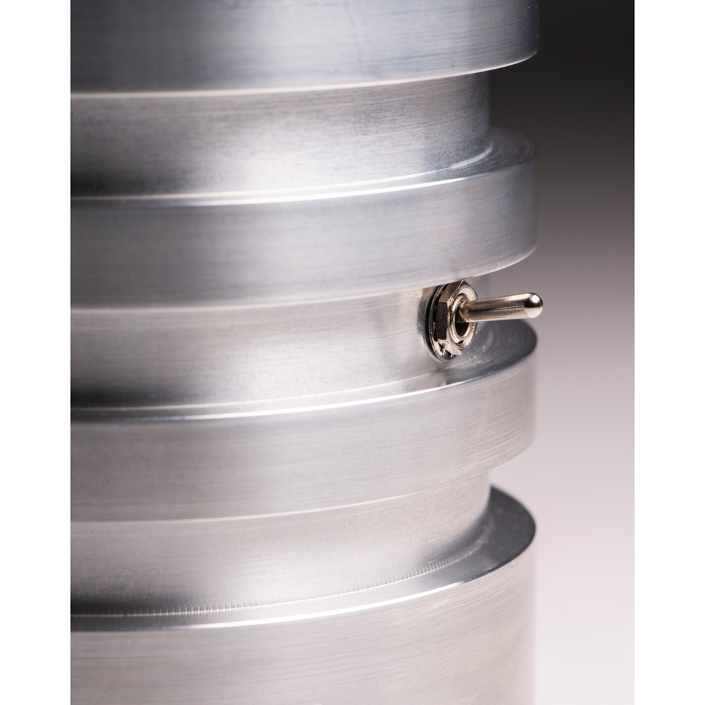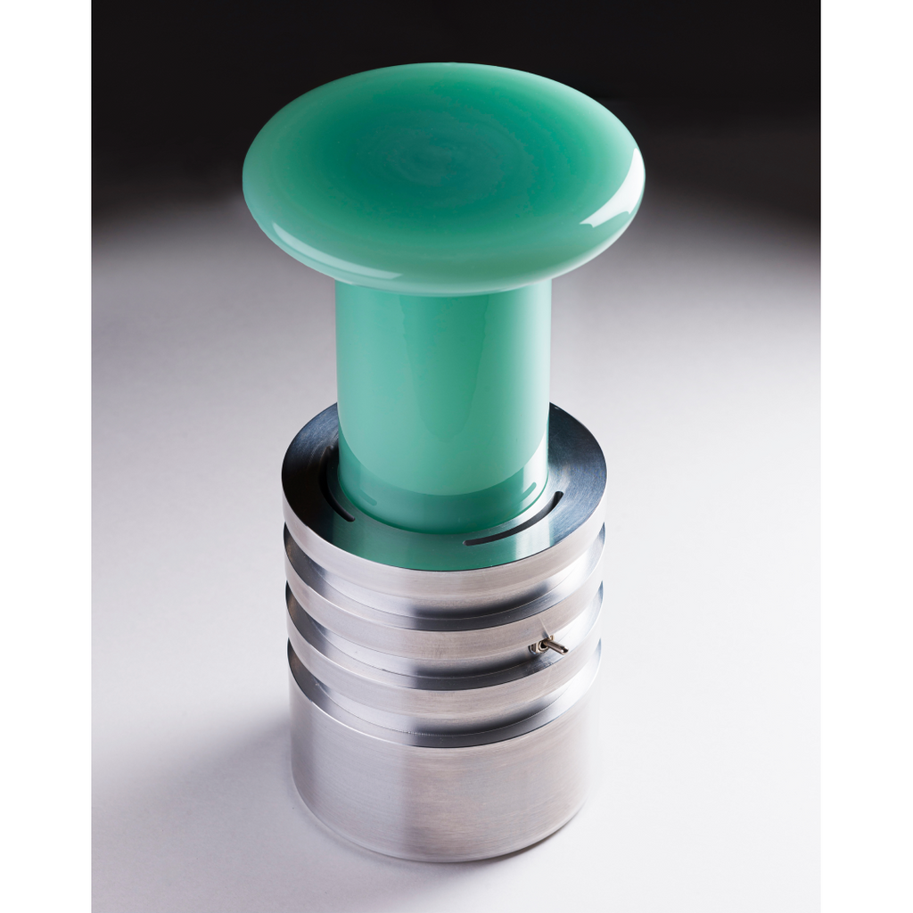 The verrine which surmounts the raw aluminum base is a unique hand-blown piece. A lever switch allows you to vary the intensity of the light. The production is carried out in France with the Studio's partners.