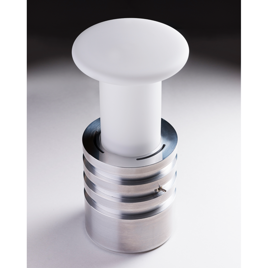 The verrine which surmounts the raw aluminum base is a unique hand-blown piece. A lever switch allows you to vary the intensity of the light. The production is carried out in France with the Studio's partners.